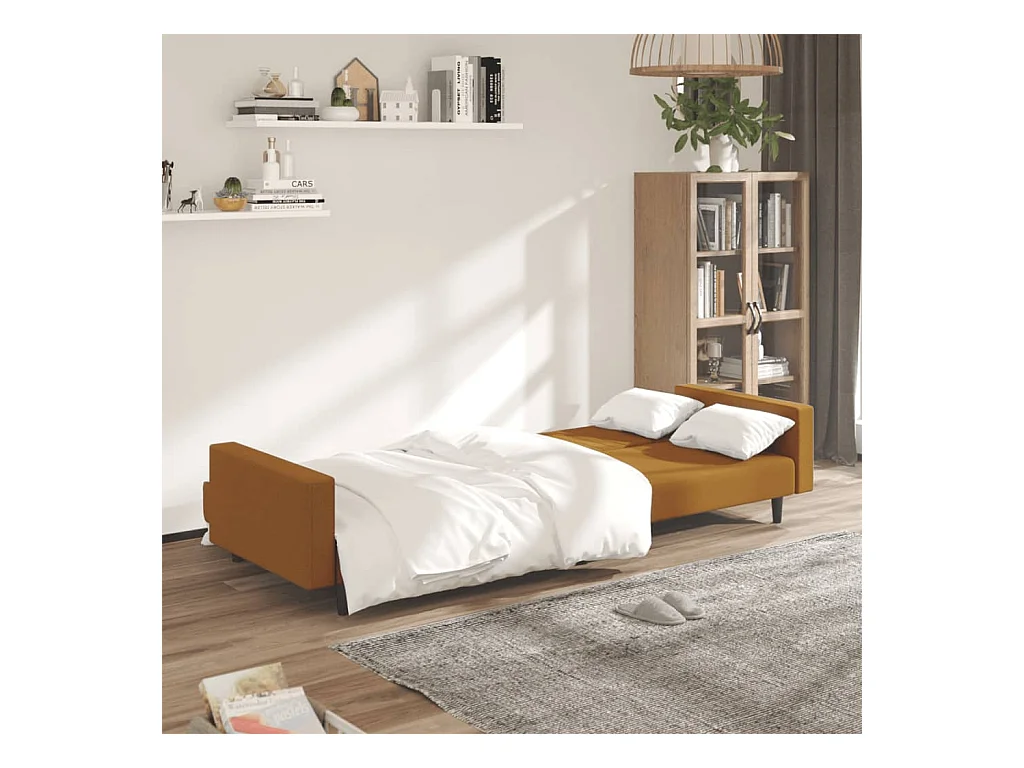 Canapé-lit à 2 places avec deux oreillers marron foncé tissu
