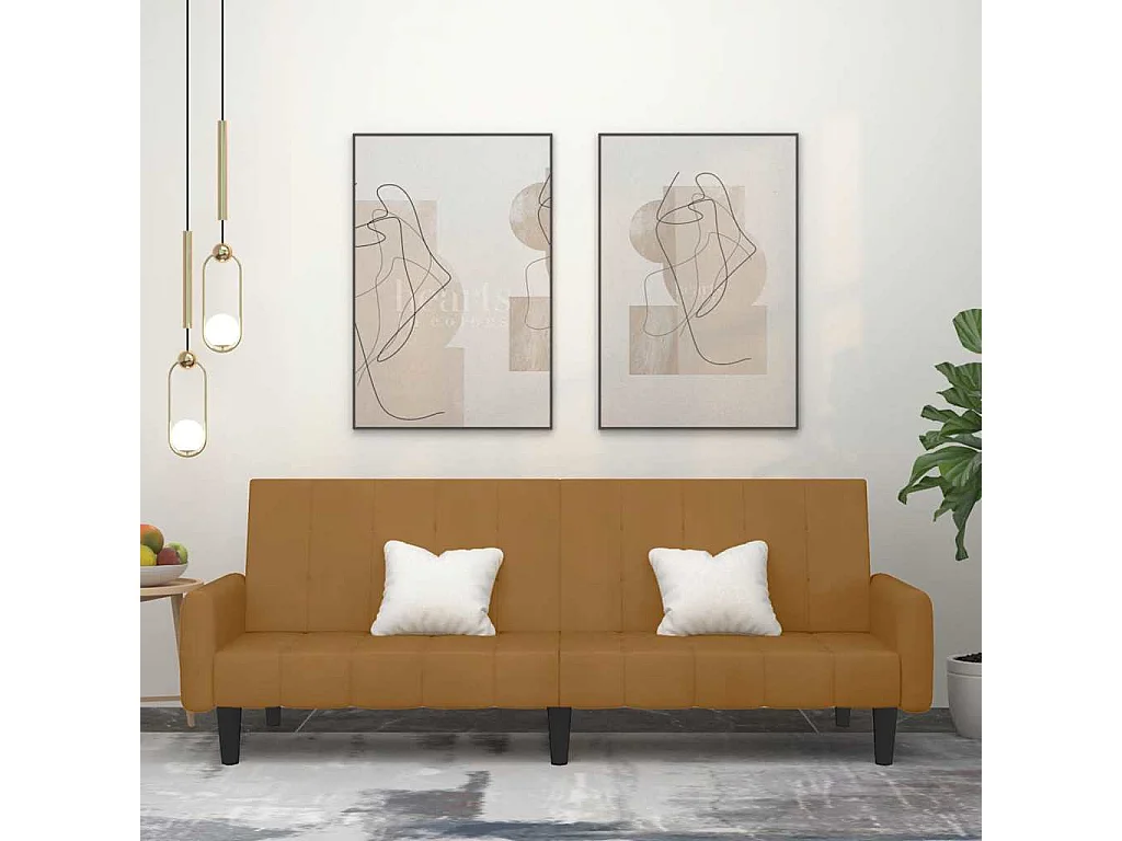 Canapé-lit à 2 places avec deux oreillers marron foncé tissu