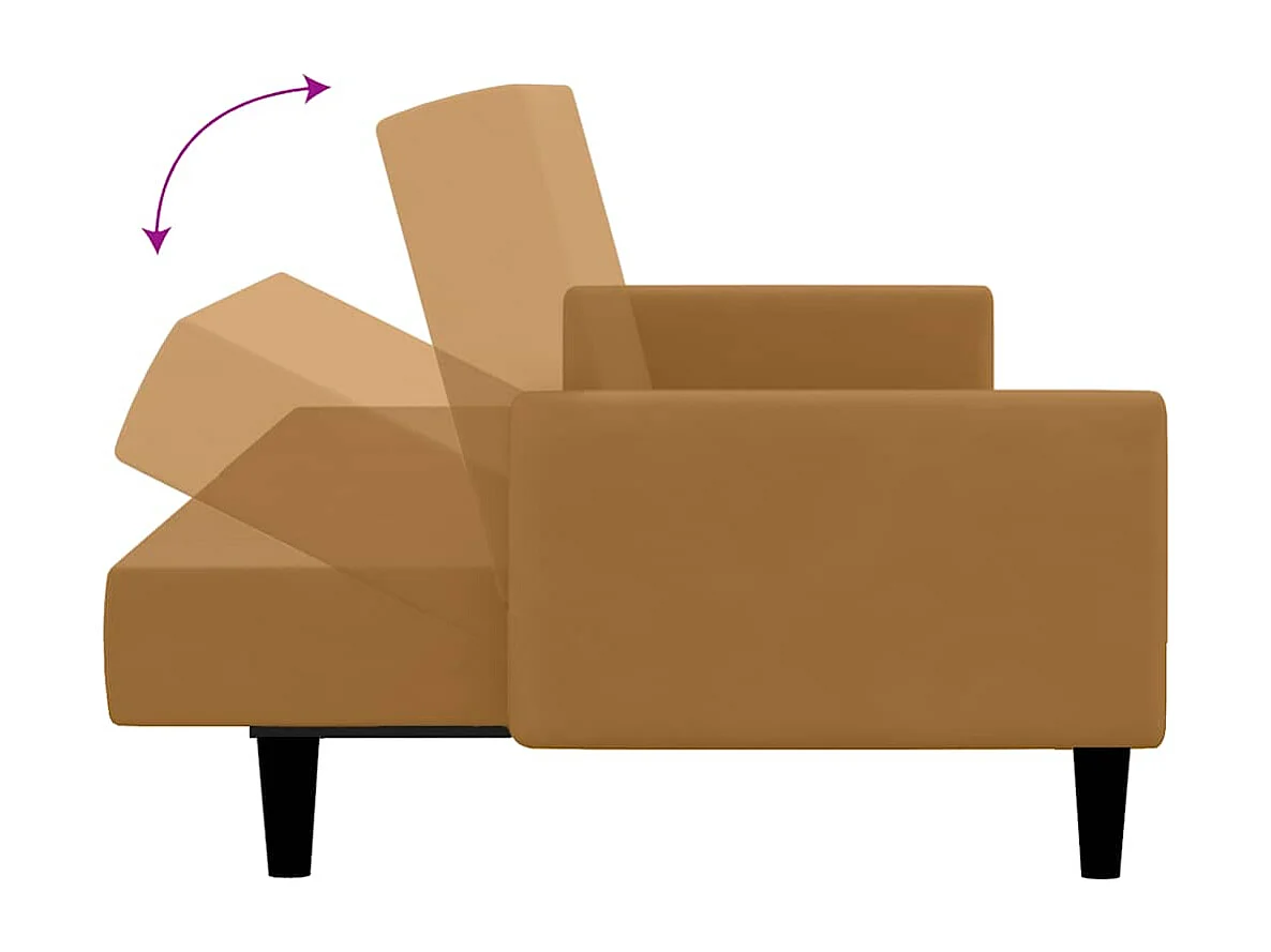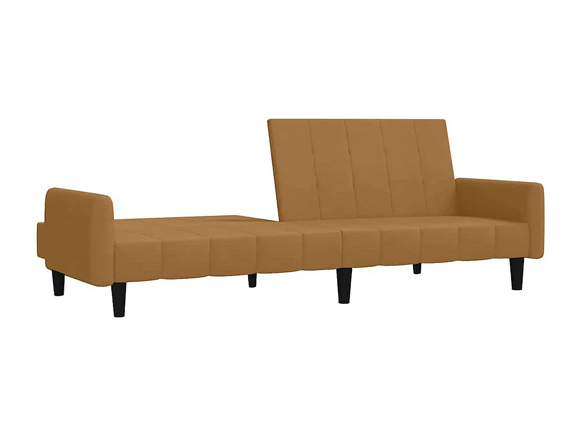 Canapé convertible 2 places - 165 x 90 x 76 cm - avec dossier et accoudoirs réglables - Microfibre - marron