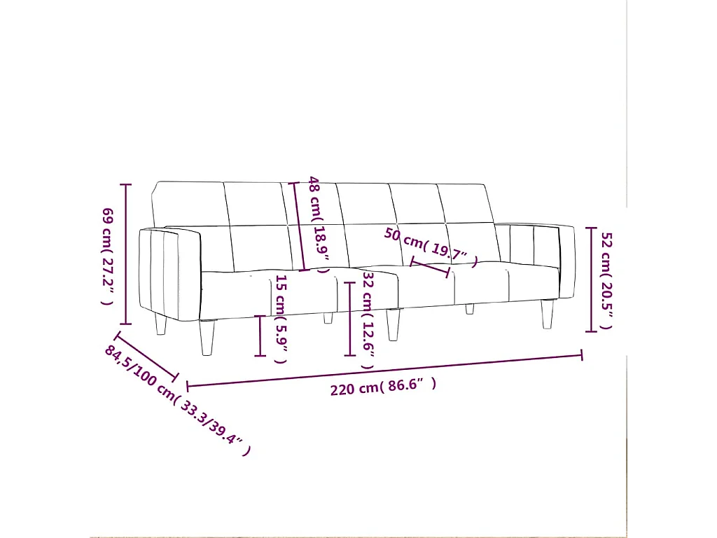 Canapé-lit à 2 places tissu