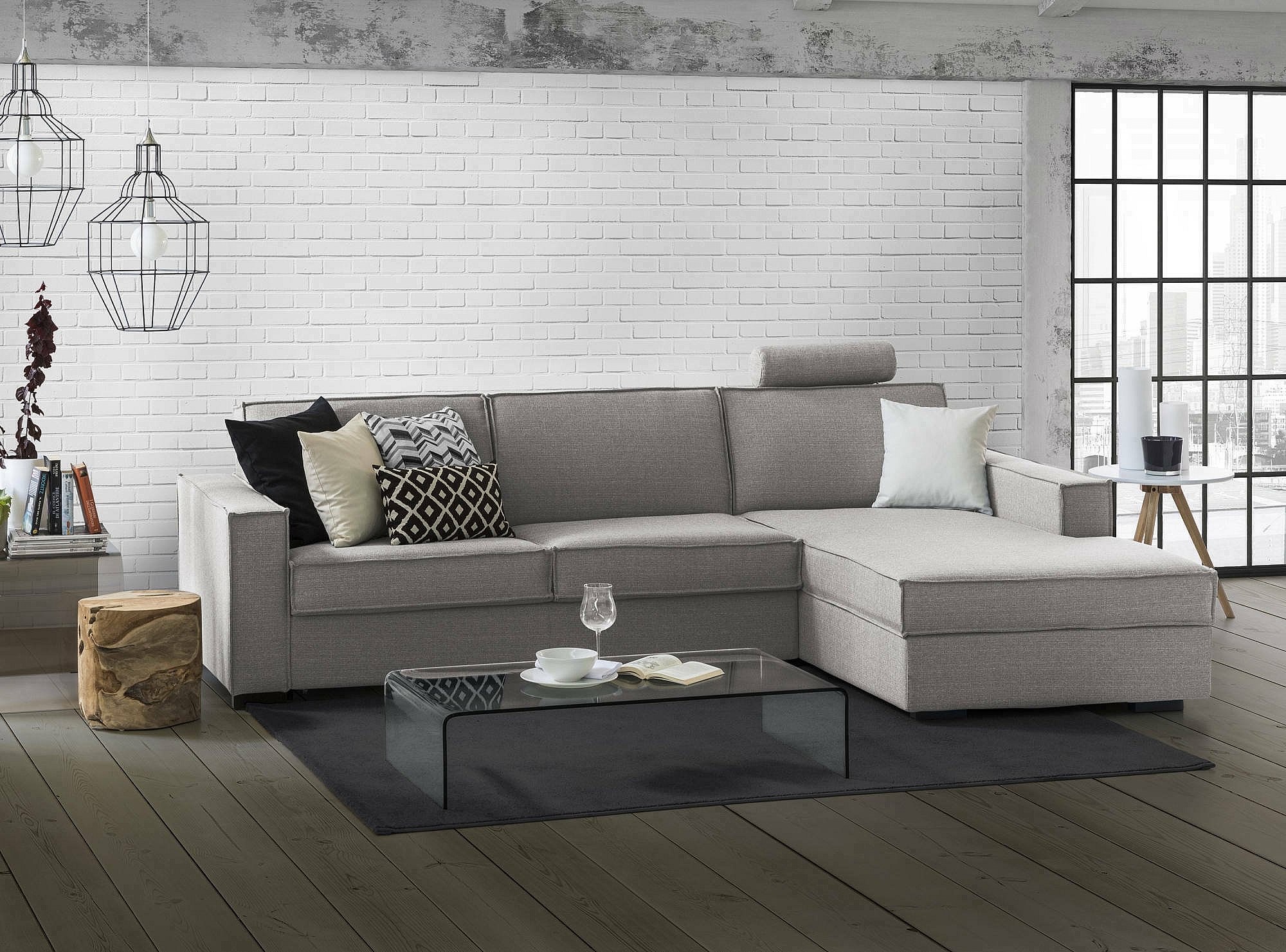 Canapé-lit Adima, Canapé d'angle, 100% Made in Italy, Canapé avec ouverture pivotante, Péninsule de rangement gauche, avec accoudoirs fins, Cm 260x95h90, Taupe