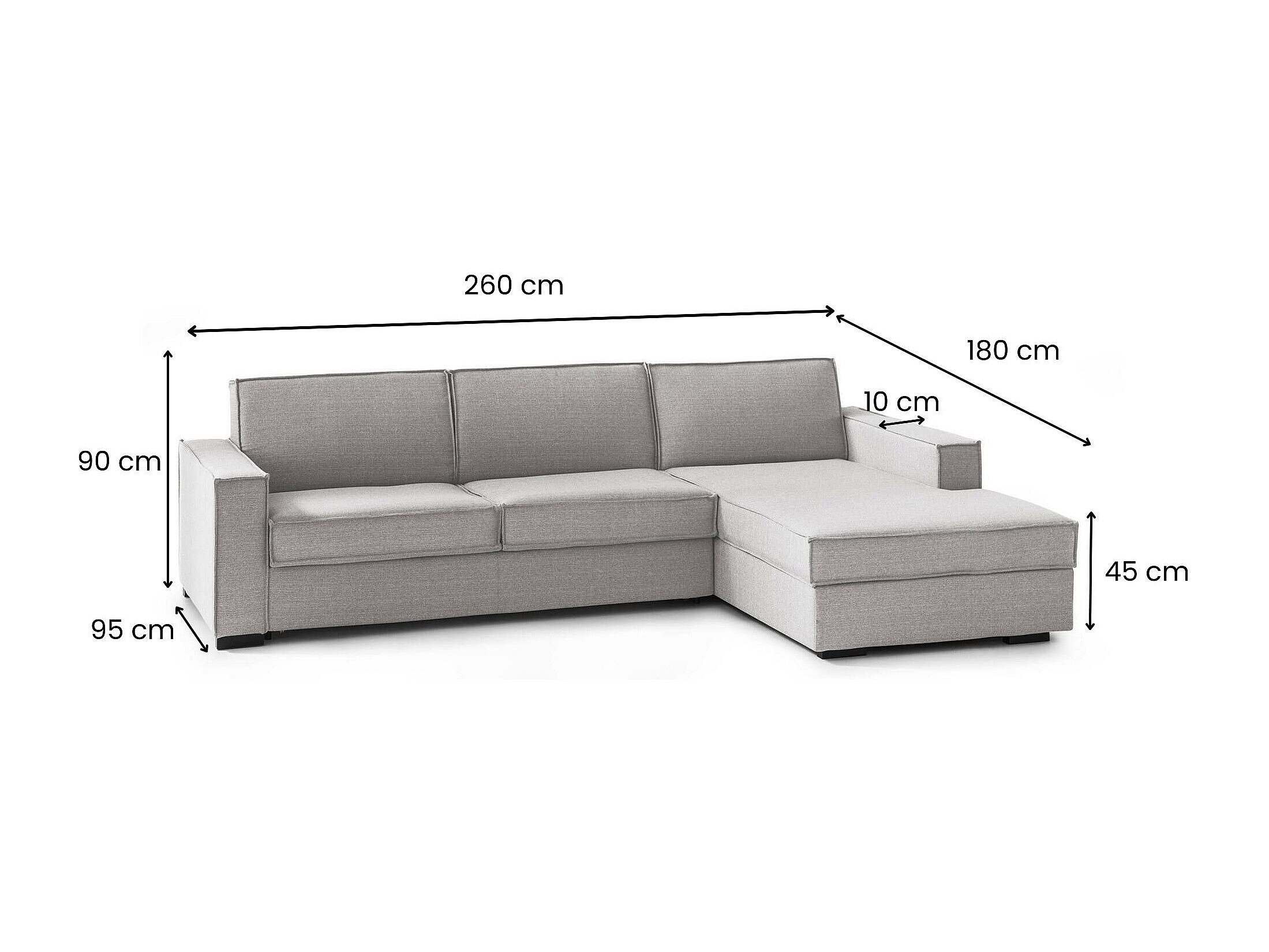 Canapé-lit Alceste, Canapé d'angle, 100% Made in Italy, Canapé à ouverture pivotante, avec péninsule de rangement droite, avec accoudoirs fins, 260x95h85 cm, Gris