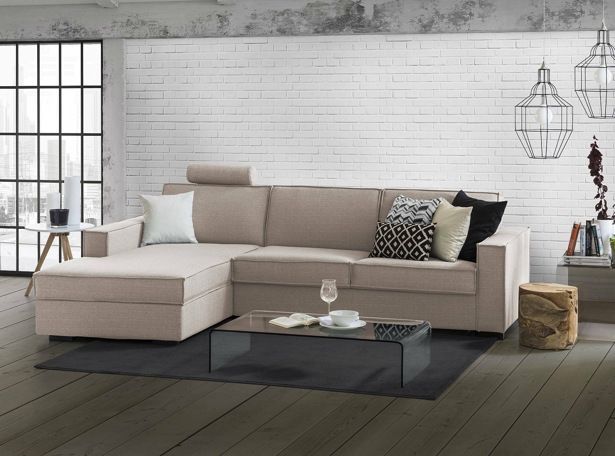 Sofá-cama Alisea, Sofá de canto, 100% Fabricado na Itália, Sofá com abertura giratória, com península de arrumação reversível, com braços finos, 260x95h90 cm, Bege