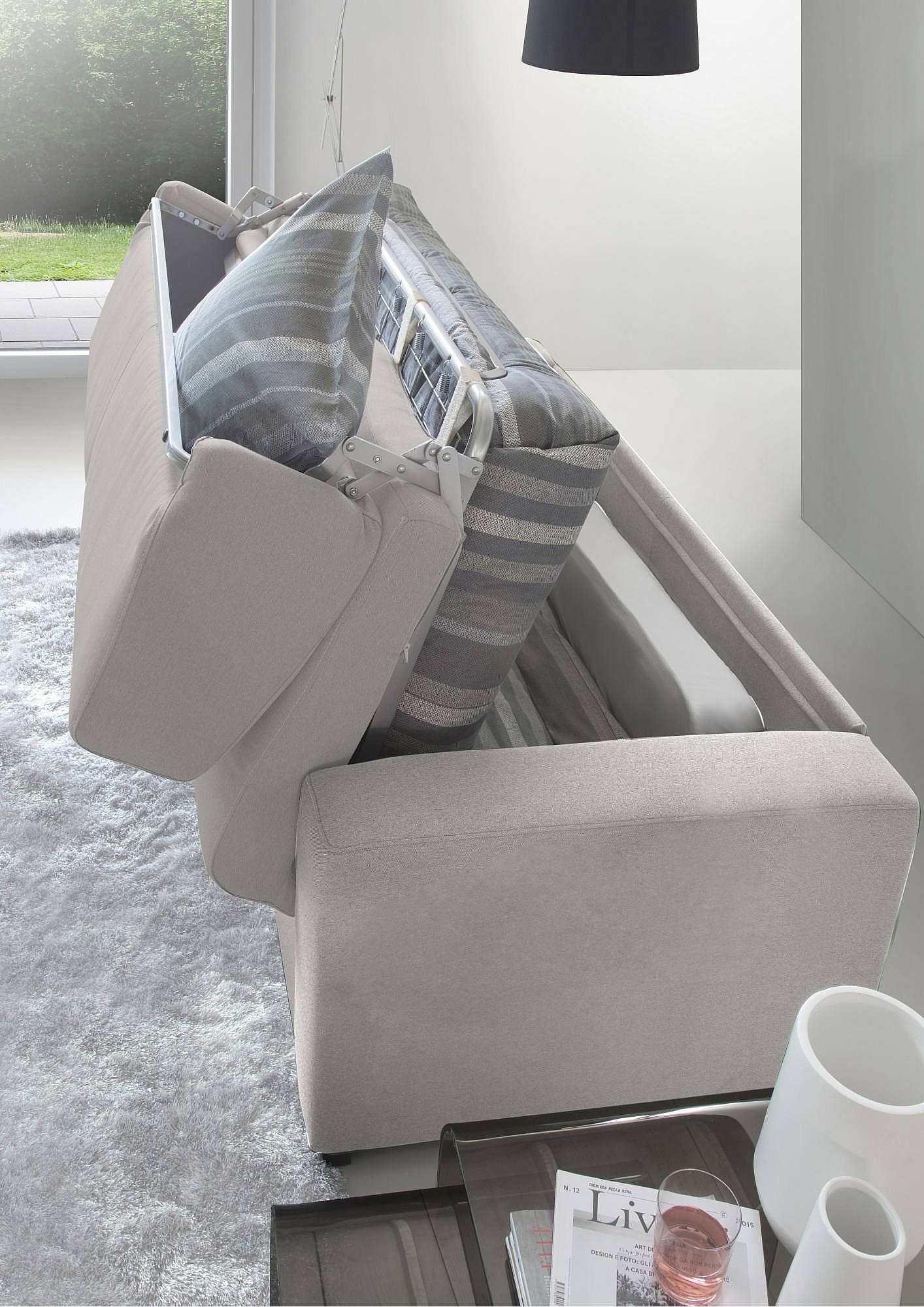 Canapé lit 2 places Abigail, Canapé de salon avec ouverture pivotante, Tissu rembourré, Accoudoirs standards, 100% Made in Italy, Cm 200x95h90, Taupe