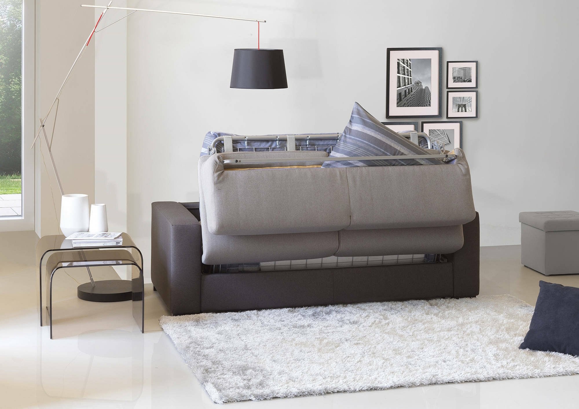 Alisee Canapé-lit, canapé 2 places, 100% Made in Italy, Canapé de salon avec ouverture trolley, en tissu rembourré, avec coussins inclus, 125x90h85 cm, Beige