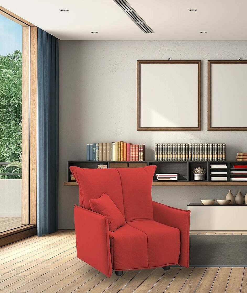 Schlafsofa Almerinda, Einzelsofa, 100% Italy, Wohnzimmersessel mit Trolley-Öffnung, aus gepolstertem Stoff, mit Standard-Armlehnen, Cm 110x90h85, Rot