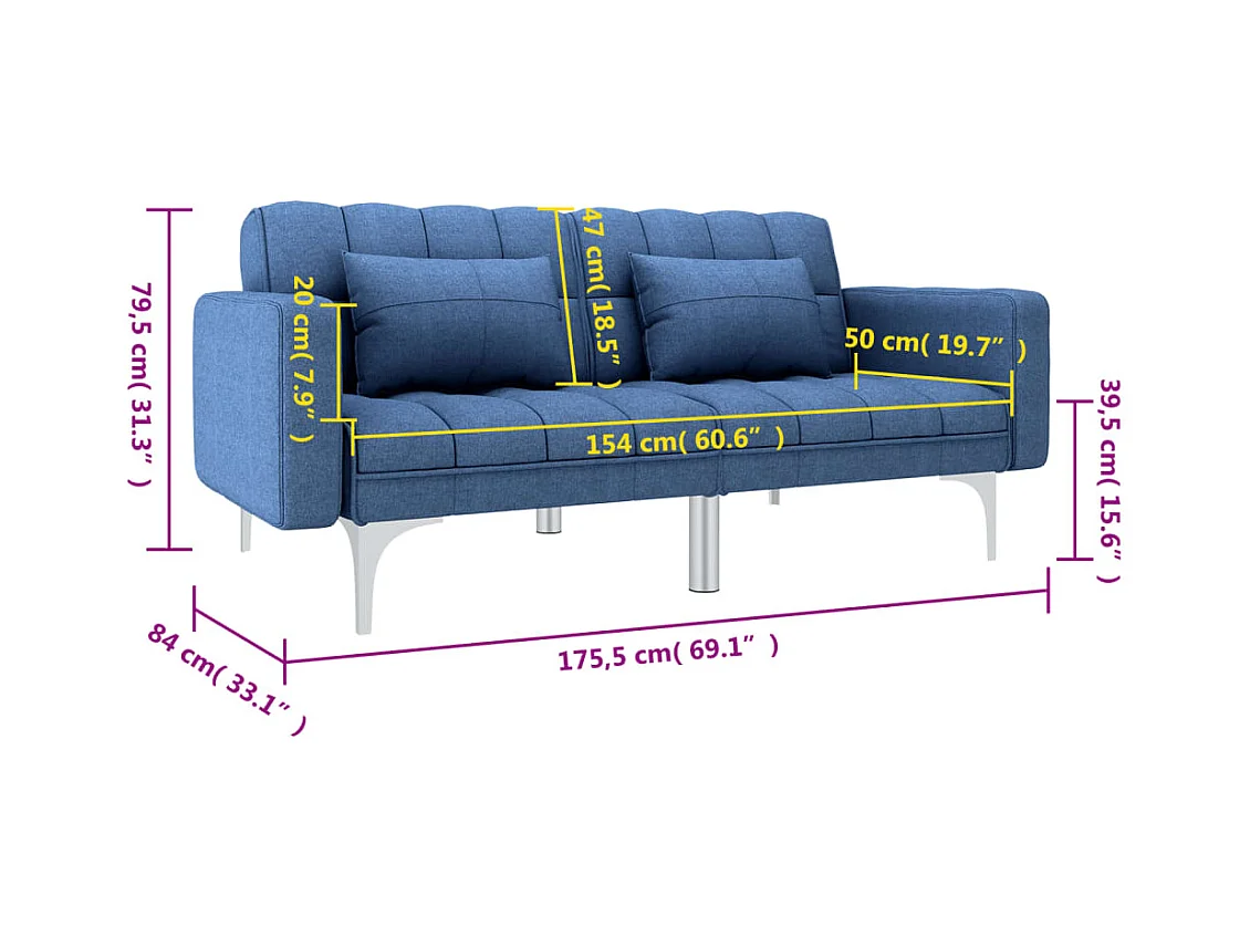 Canapé-lit Daabi, Grand canapé 2 places, 100% Made in Italy, Canapé de salon à ouverture pivotante, en tissu rembourré, avec accoudoirs fins, 180x95h90 cm, Bleu