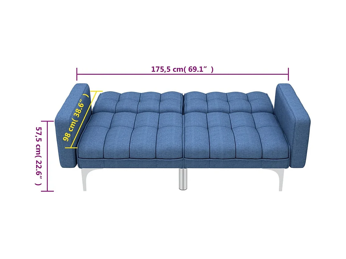 Canapé-lit Dababo, canapé 2 places, 100% Made in Italy, Canapé de salon à ouverture pivotante, en tissu rembourré, avec accoudoirs fins, 160x95h90 cm, Bleu