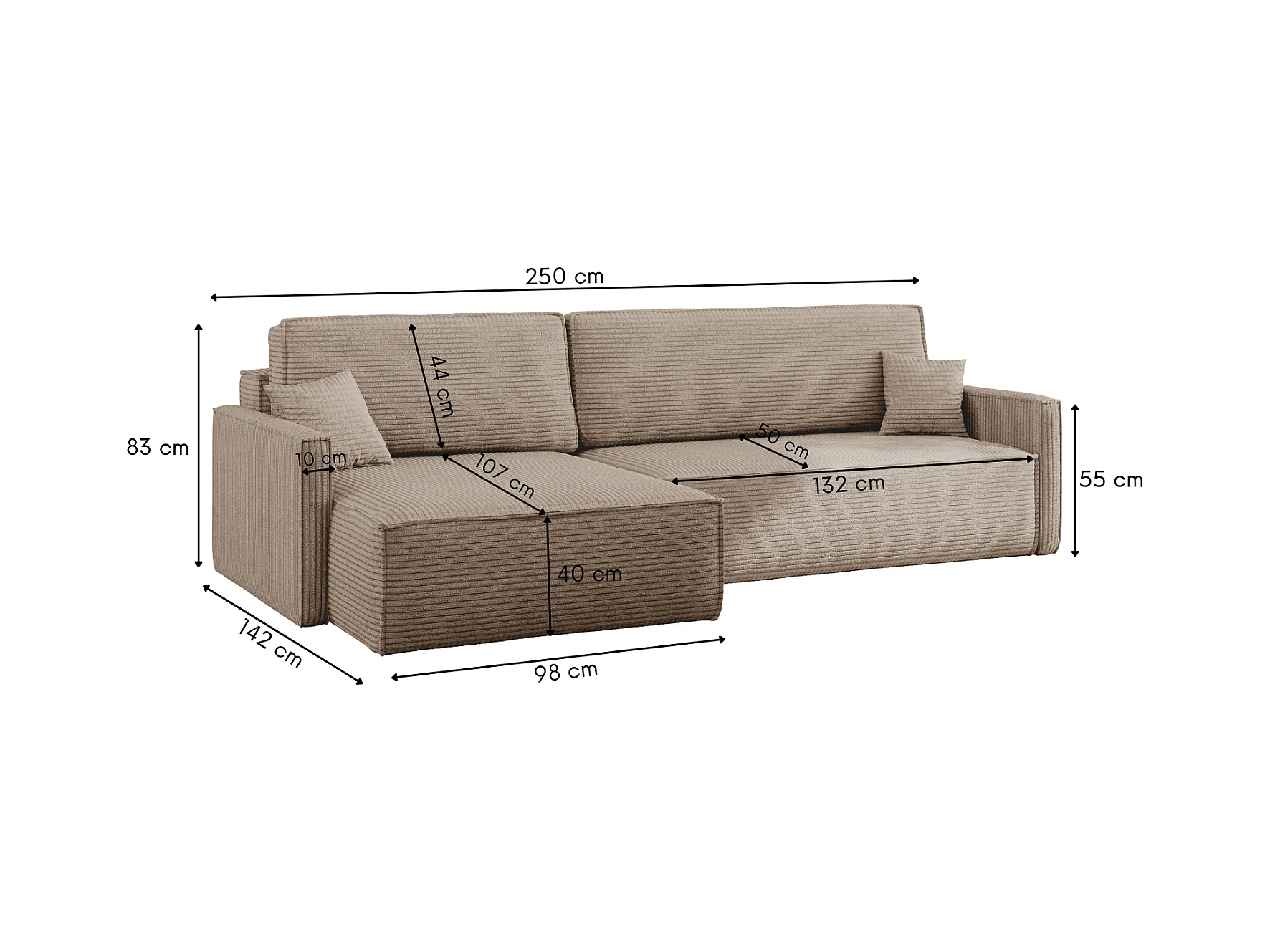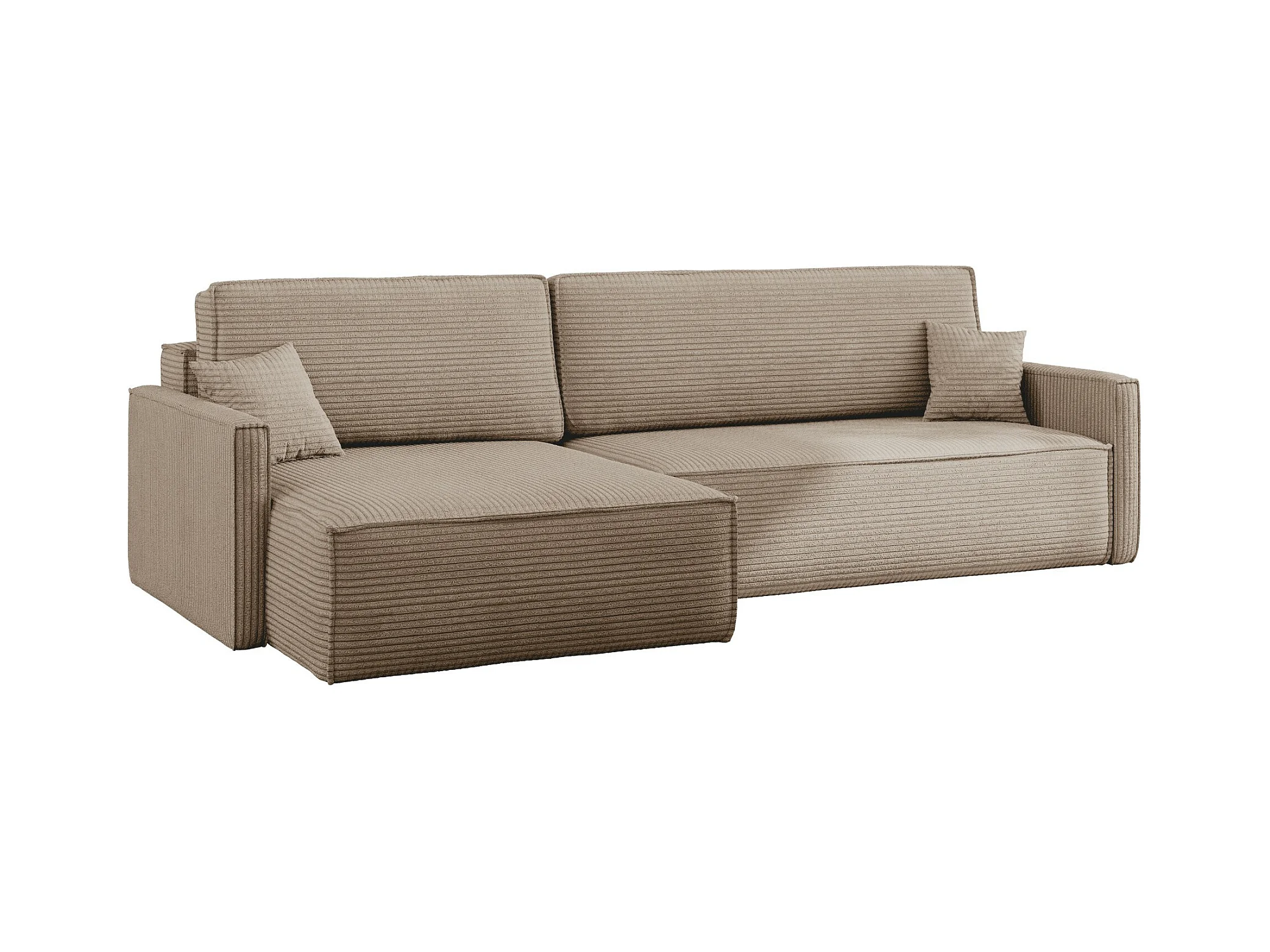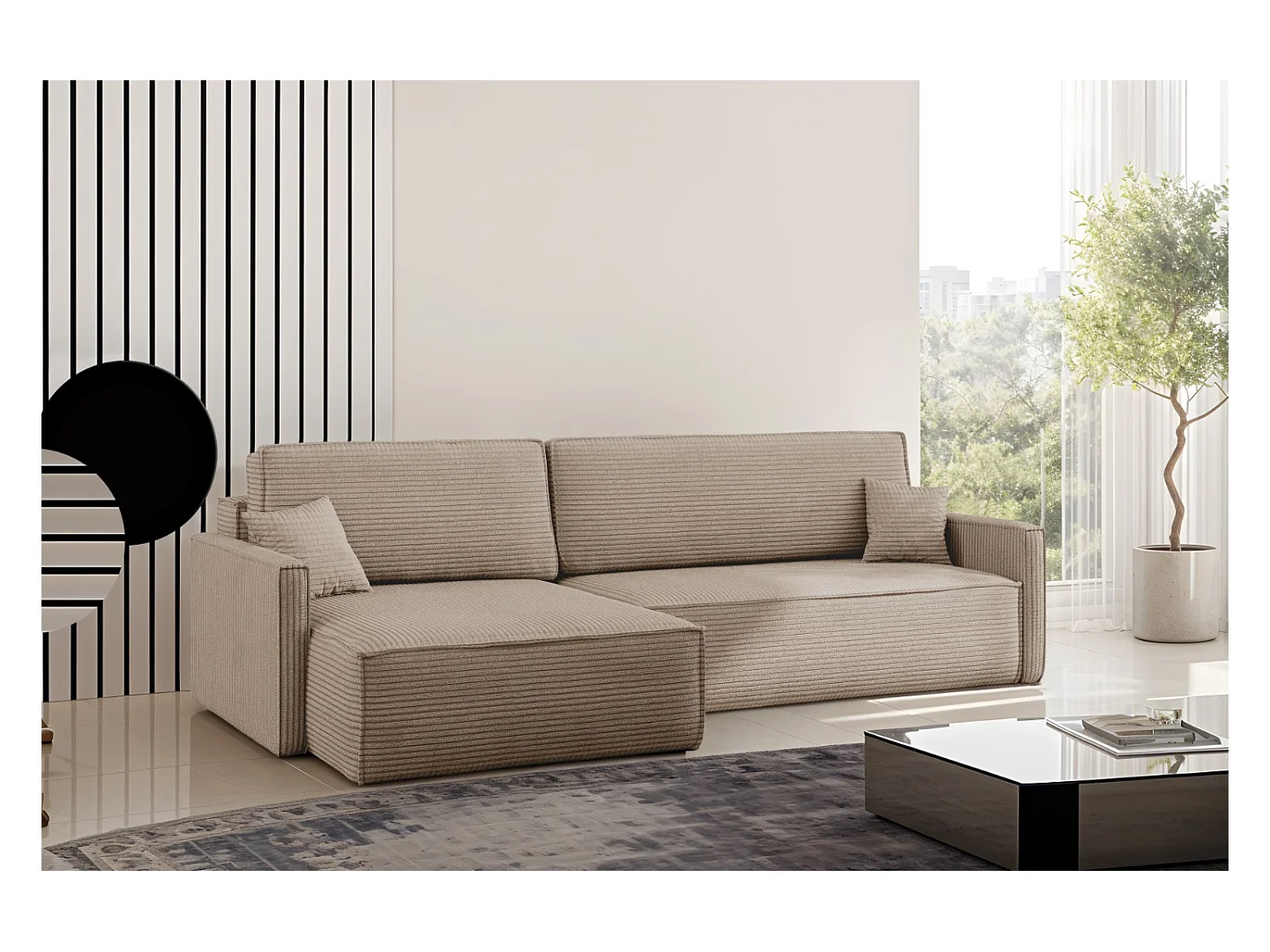Canapé d'angle avec fonction couchage et coffre de lit, canapé d'angle en L, canapé d'angle en L BEST tissu Abriamo beige foncé gauche
