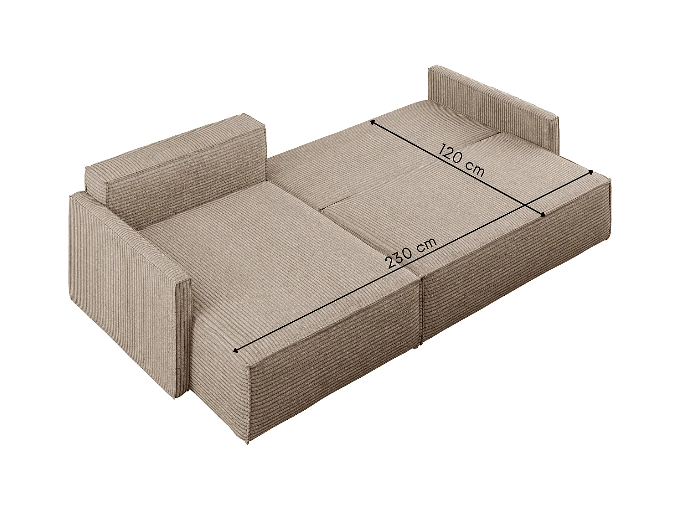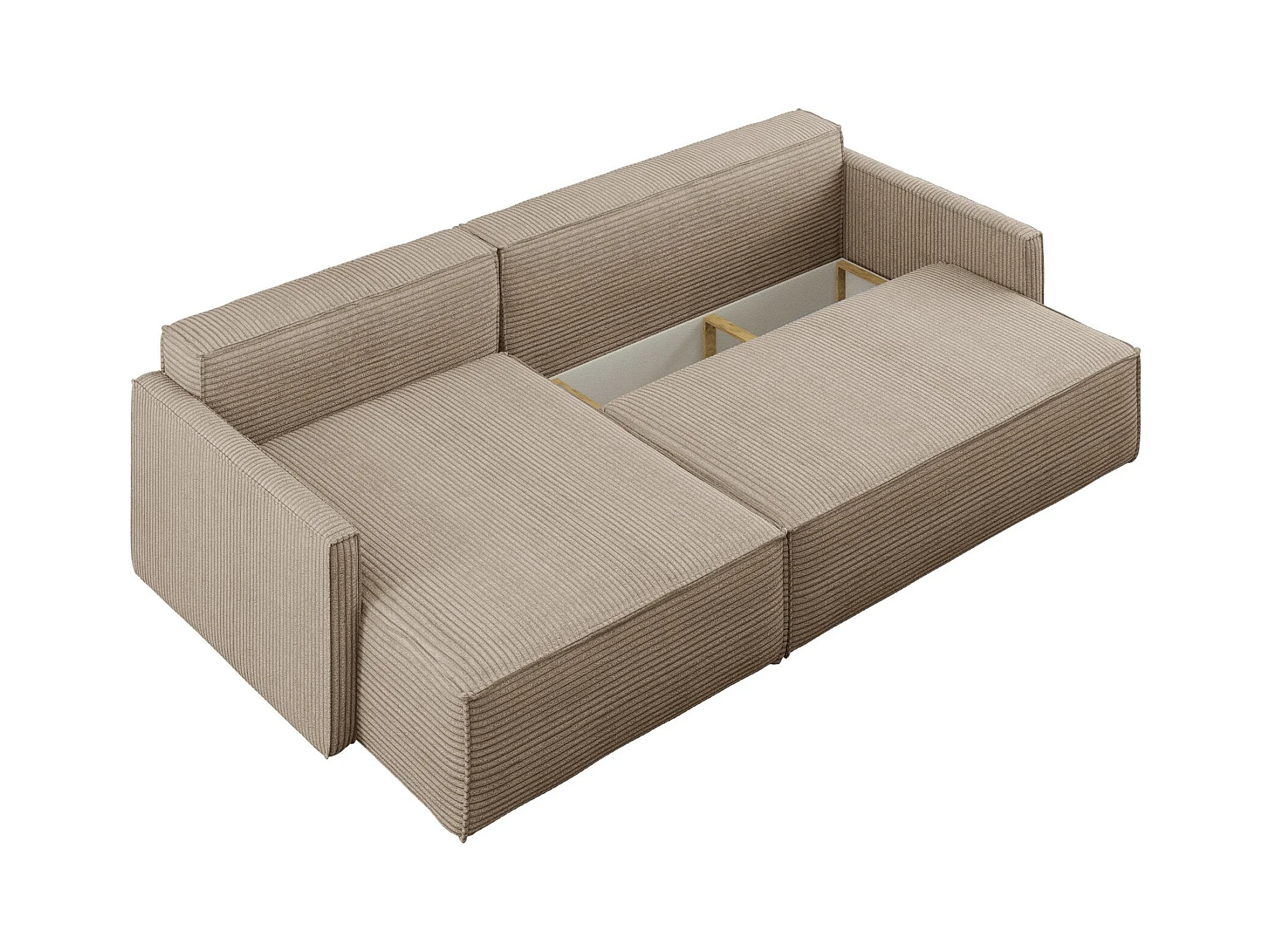 Canapé d'angle convertible en velours côtelé vanille ADI XL