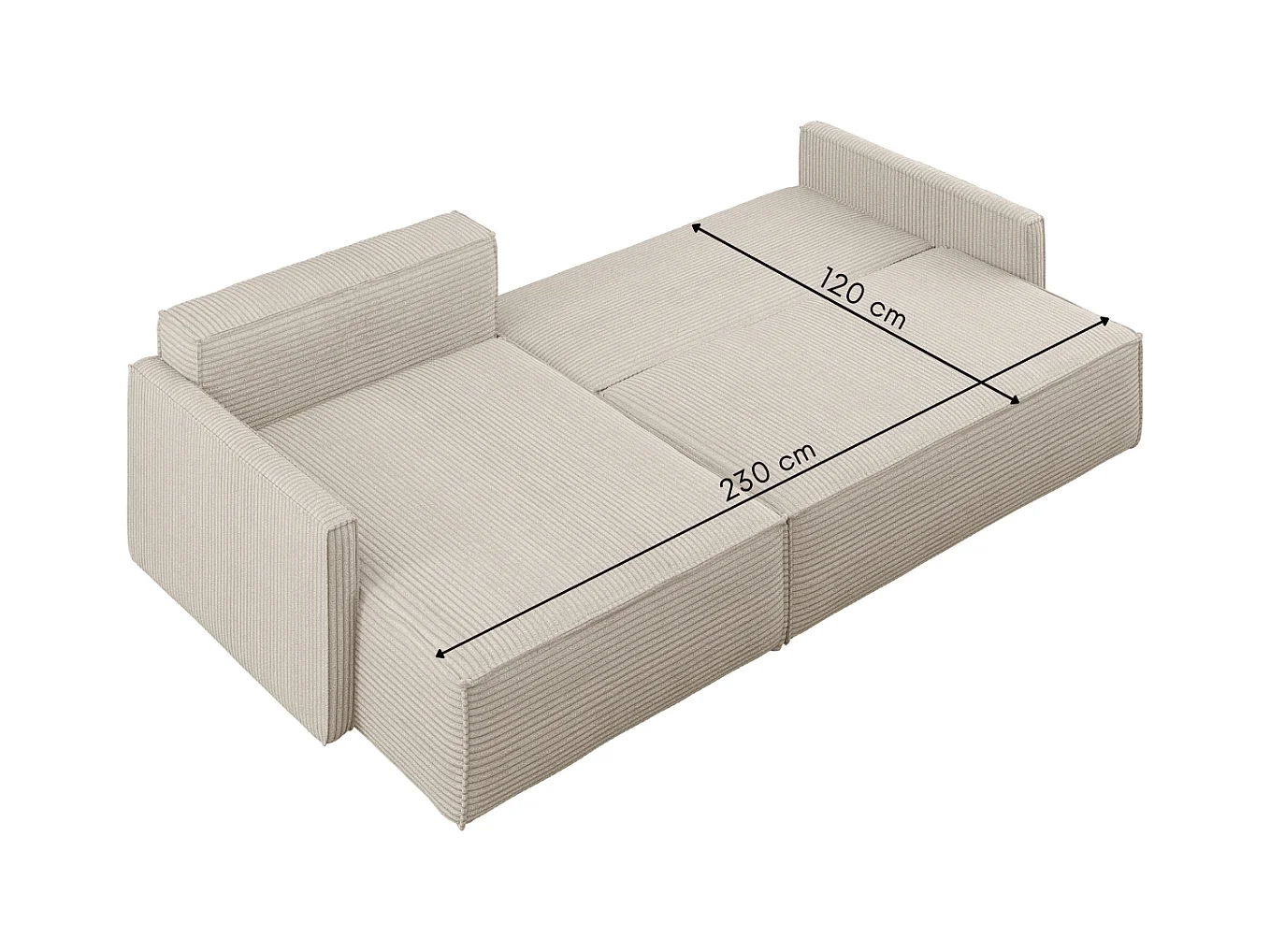 Canapé d'angle convertible CLARK 3 places en velours côtelé beige - HAPPY GARDEN