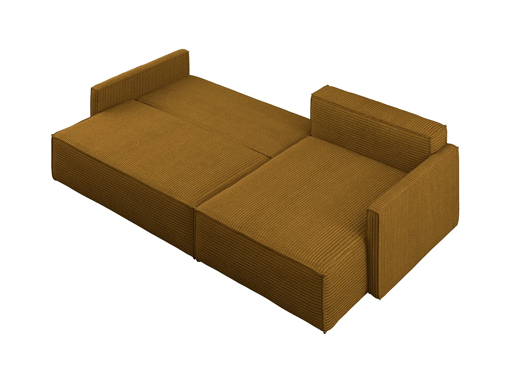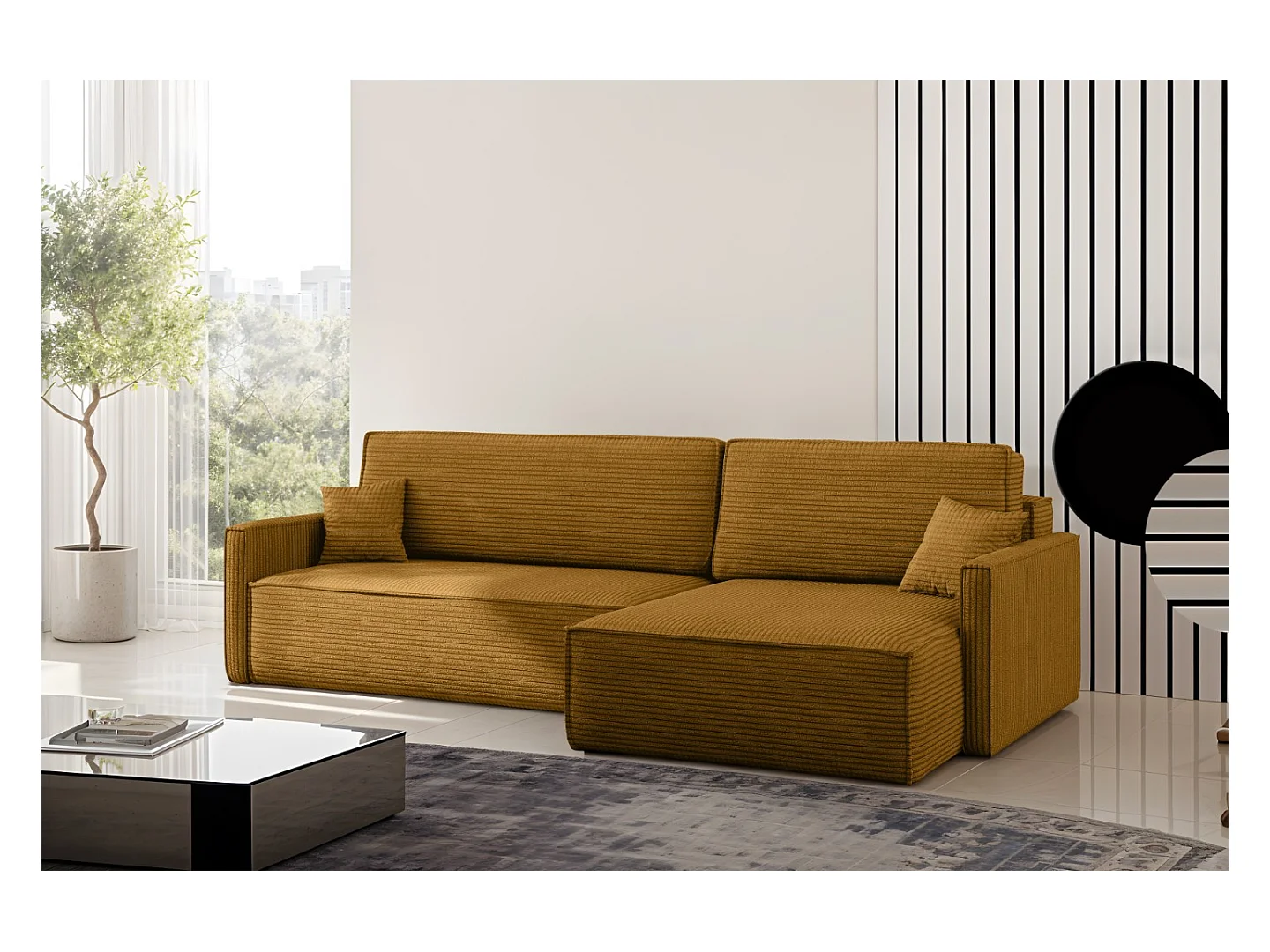 Canapé d'angle Carlos avec fonction couchage et coffre de lit Tissu élégant Poso couleur moutarde
