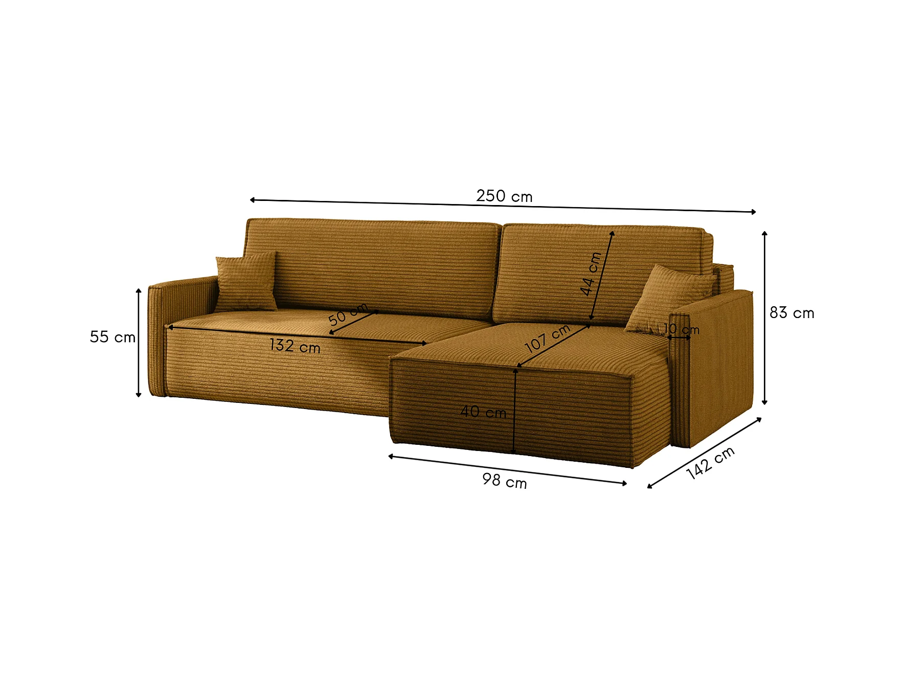 Canapé d'angle ATOM avec fonction couchage, tissu Monolith, moutarde, droit
