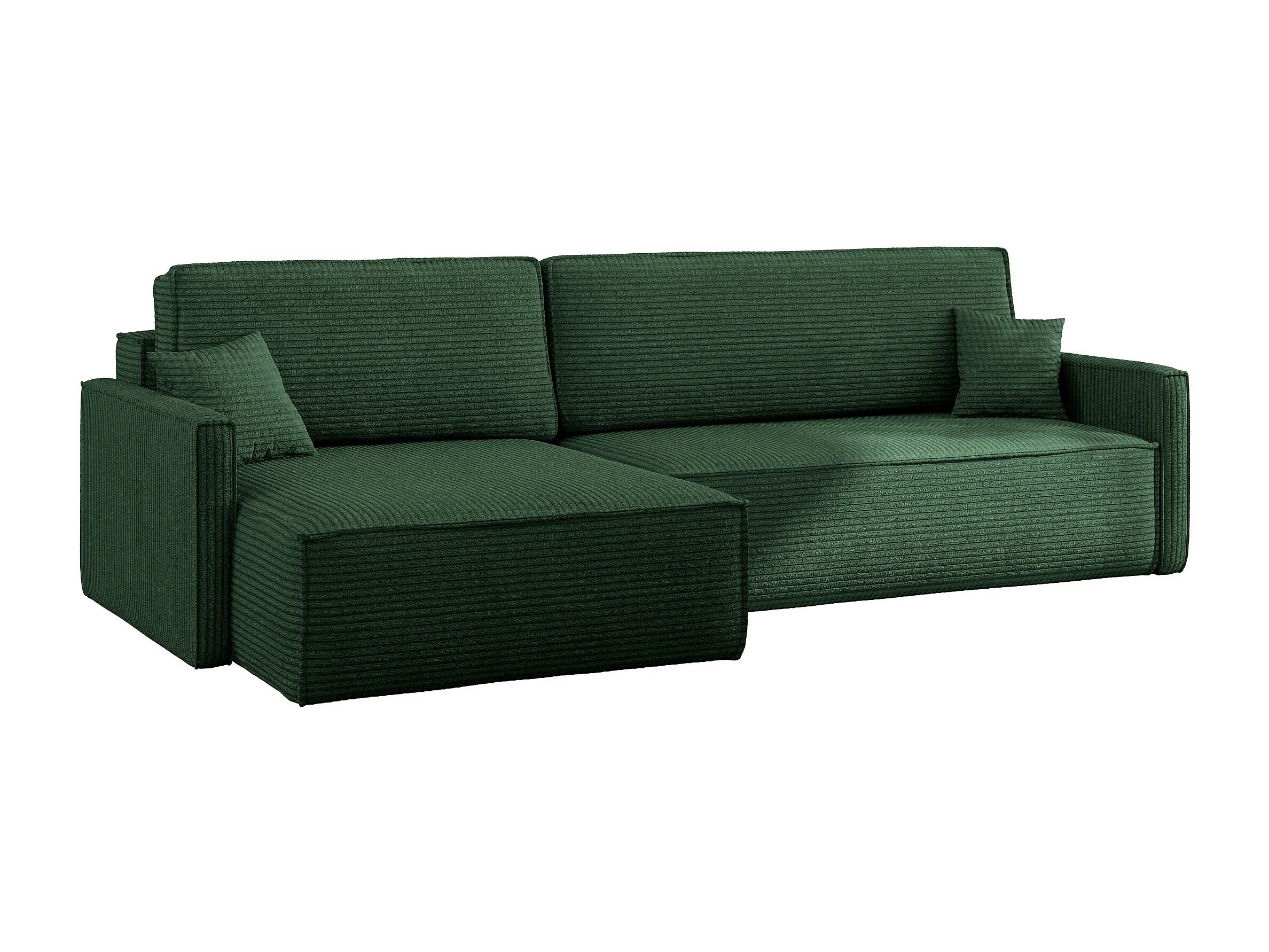Canapé-lit Carlos, canapé d'angle en L avec fonction couchage et coffre de lit, tissu Poso Green Left