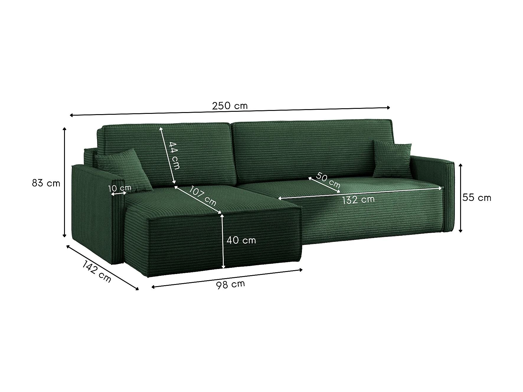 Canapé d'angle convertible CLARK 3 places en velours côtelé vert - HAPPY GARDEN
