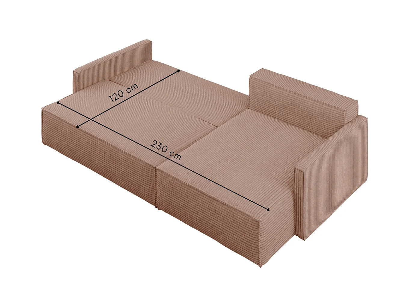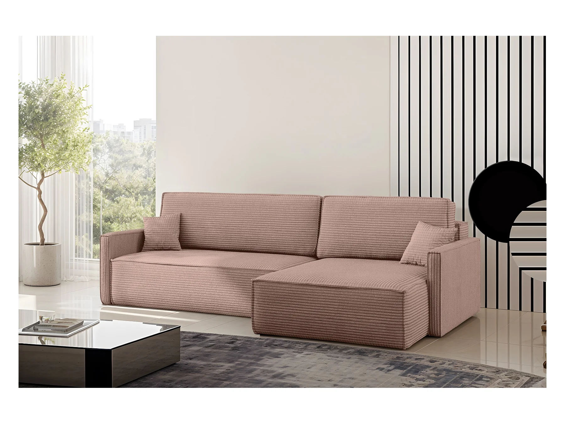 Grand canapé d'angle convertible, en velours côtelé rose poudré BISK