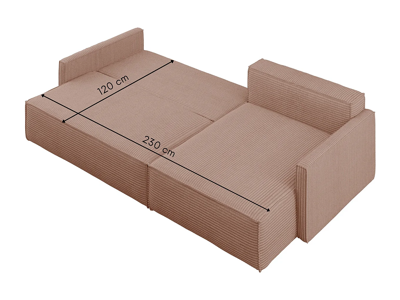Canapé-lit Carlos, canapé d'angle en L avec fonction couchage et coffre de lit, tissu Poso Rosa, droite