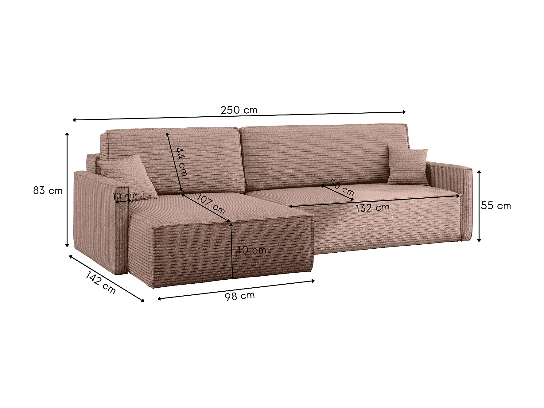 Canapé-lit Carlos, canapé d'angle en L avec fonction couchage et coffre de lit, tissu Poso Rosa Left
