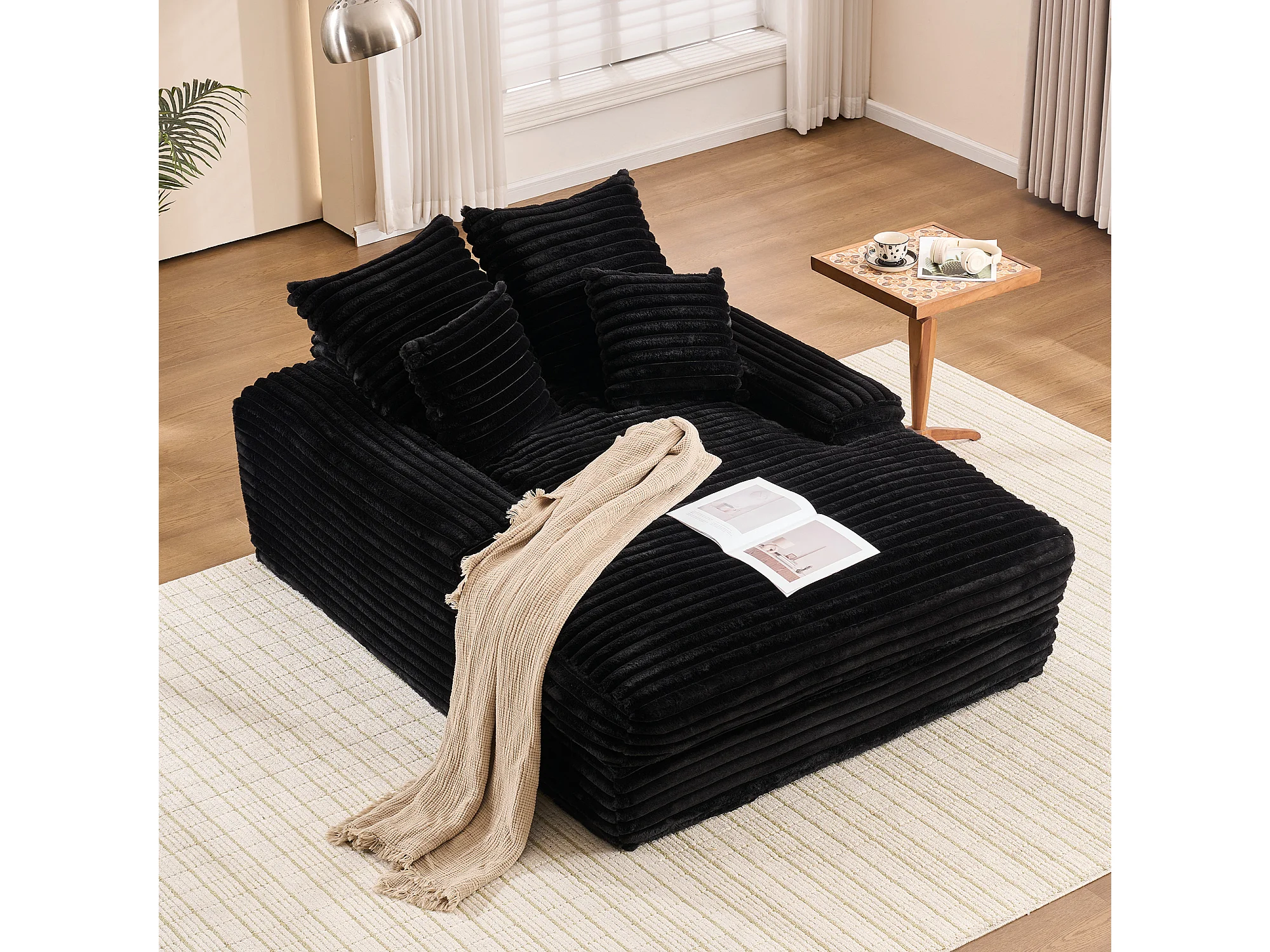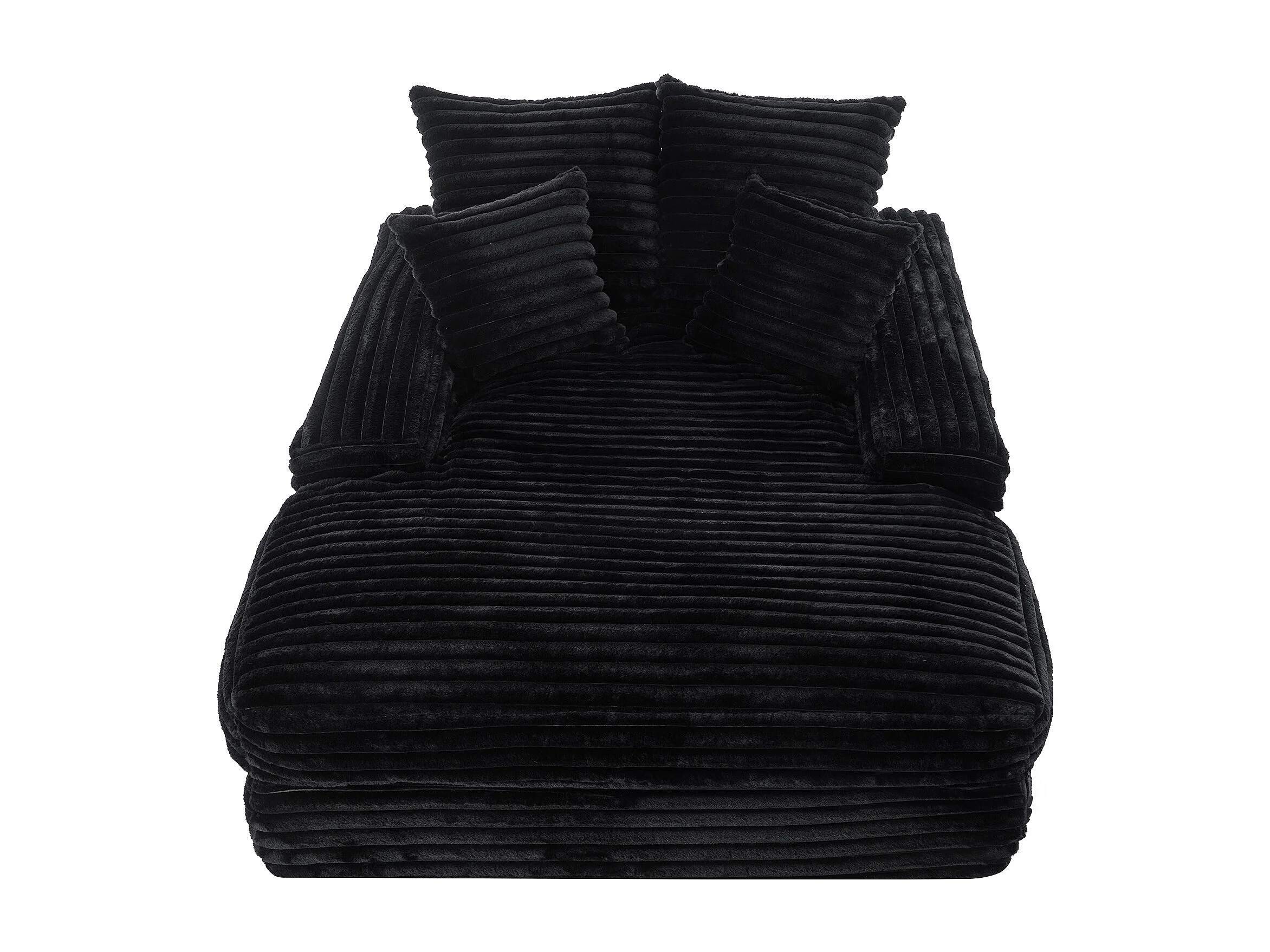 Canapé lit chaise longue avec 4 coussins - Velours côtelé noir