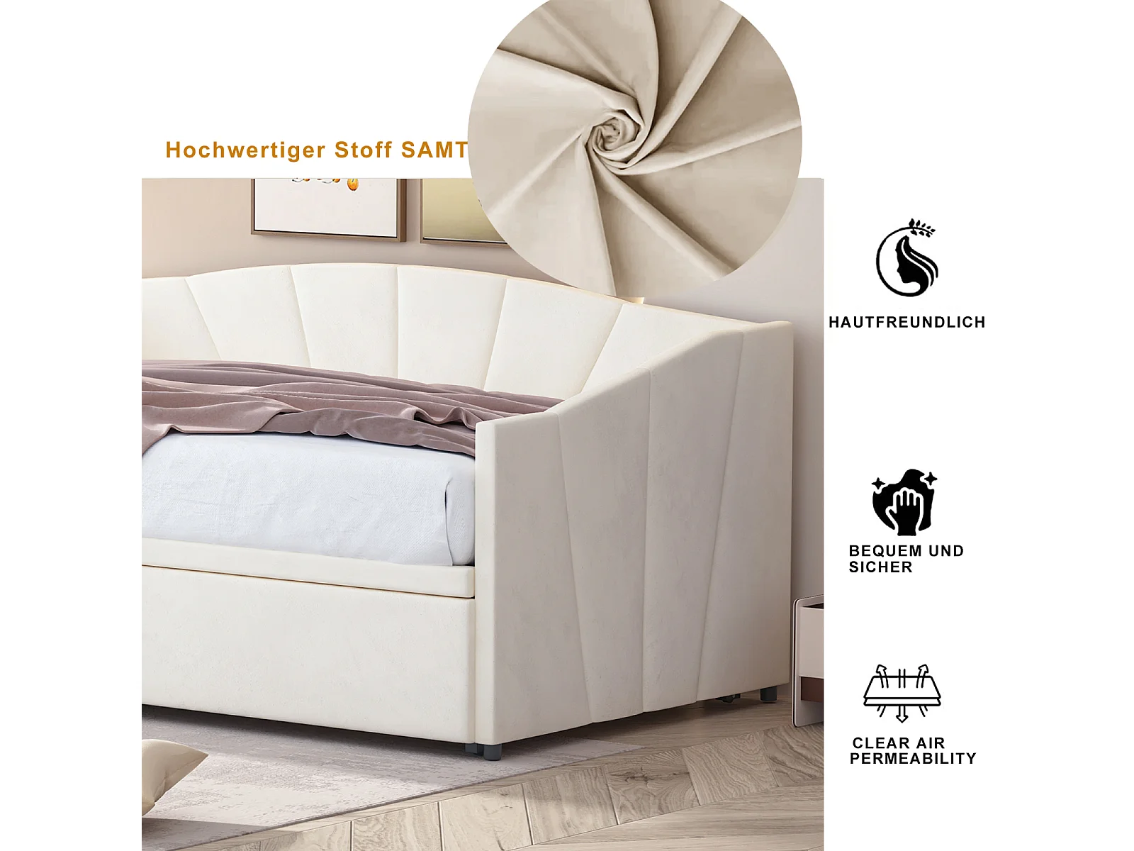 Canapé-lit multifonction 90 x 200 cm, lit avec 2 grands tiroirs de rangement, tissu velours beige (205x97x68 cm)