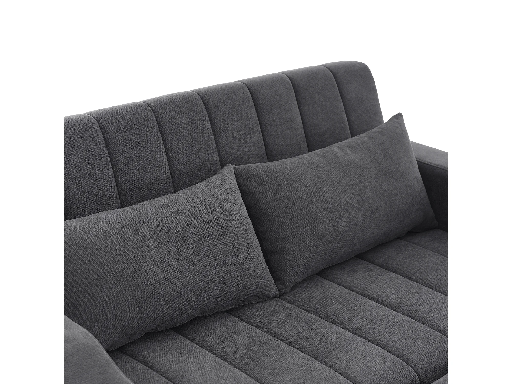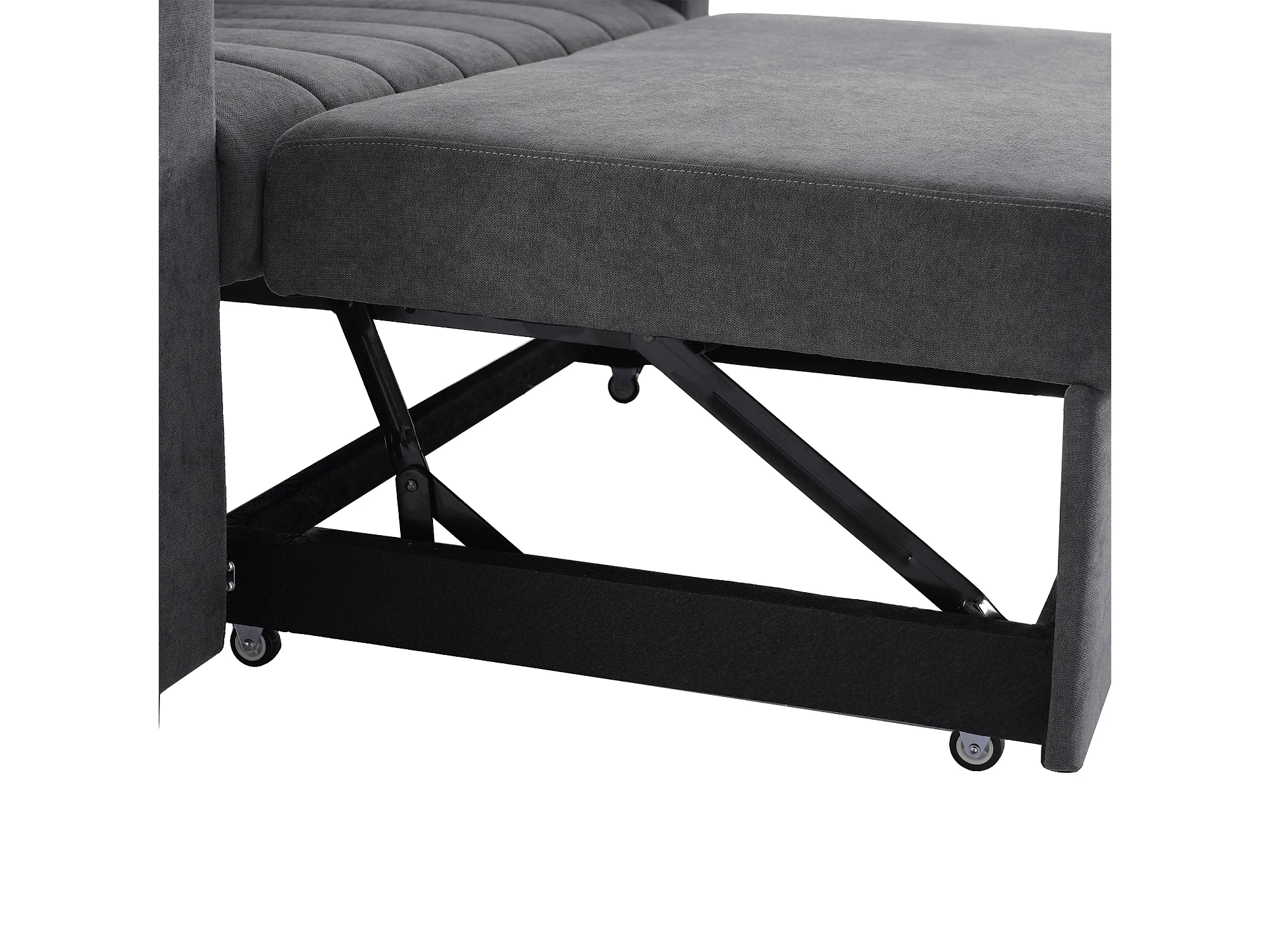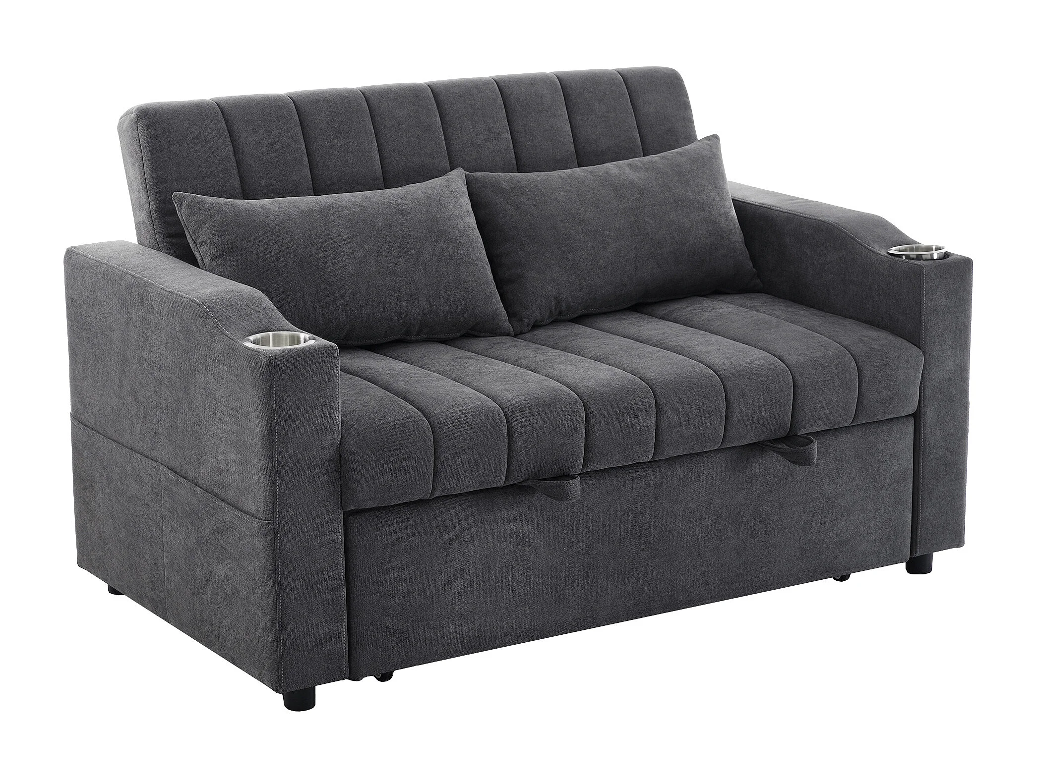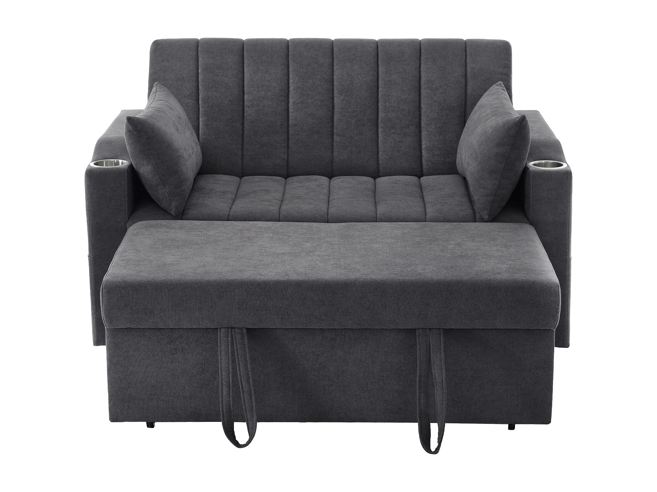 Canapé convertible 136x162x84 cm, dossier 3 positions, porte gobelets, poches latérales, tissu coton lin gris
