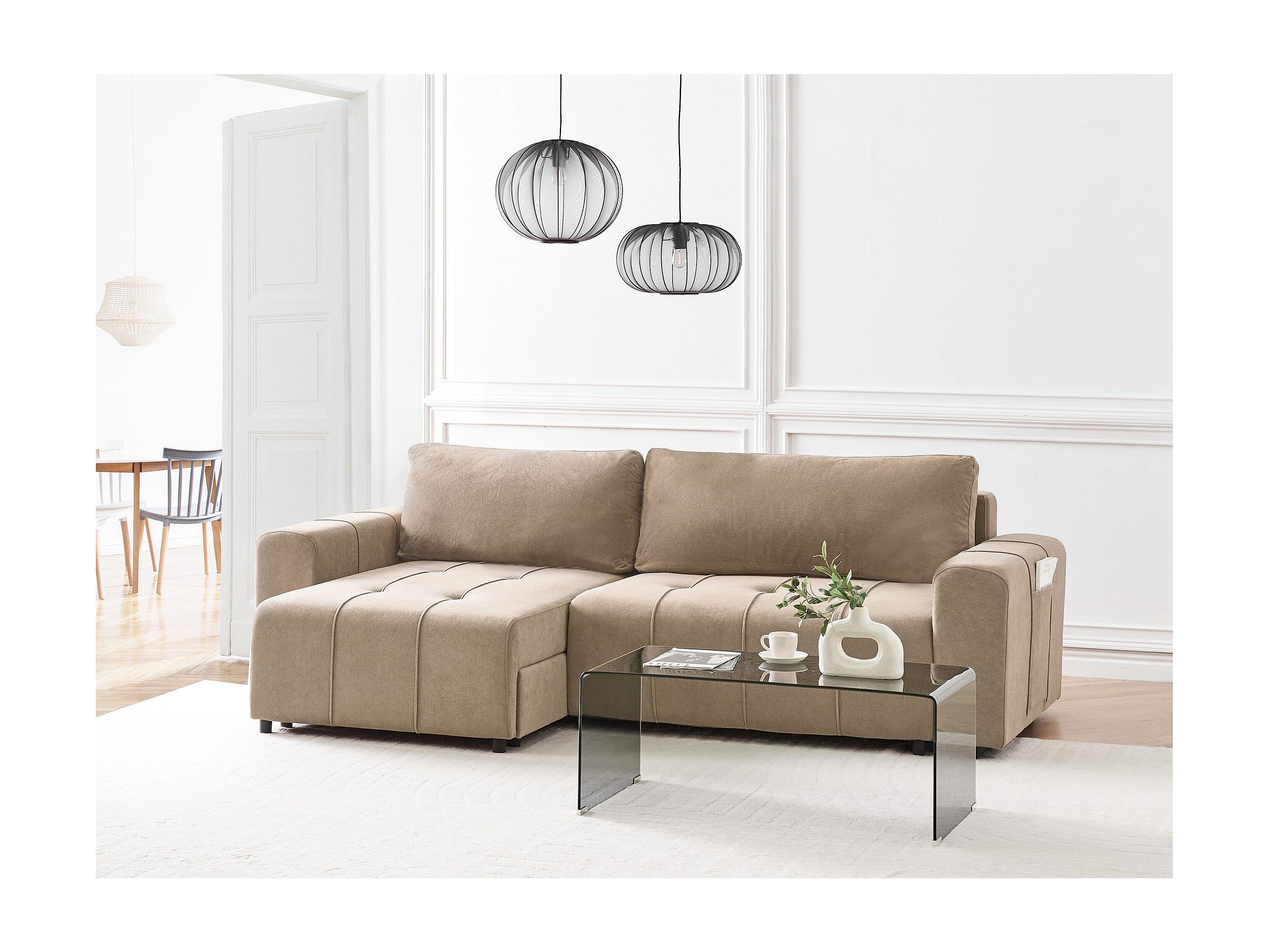 Canapé d'angle avec fonction sommeil BALOO - Design moderne, haute fonctionnalité, assise confortable, matériaux durables, couleur marron, gauche