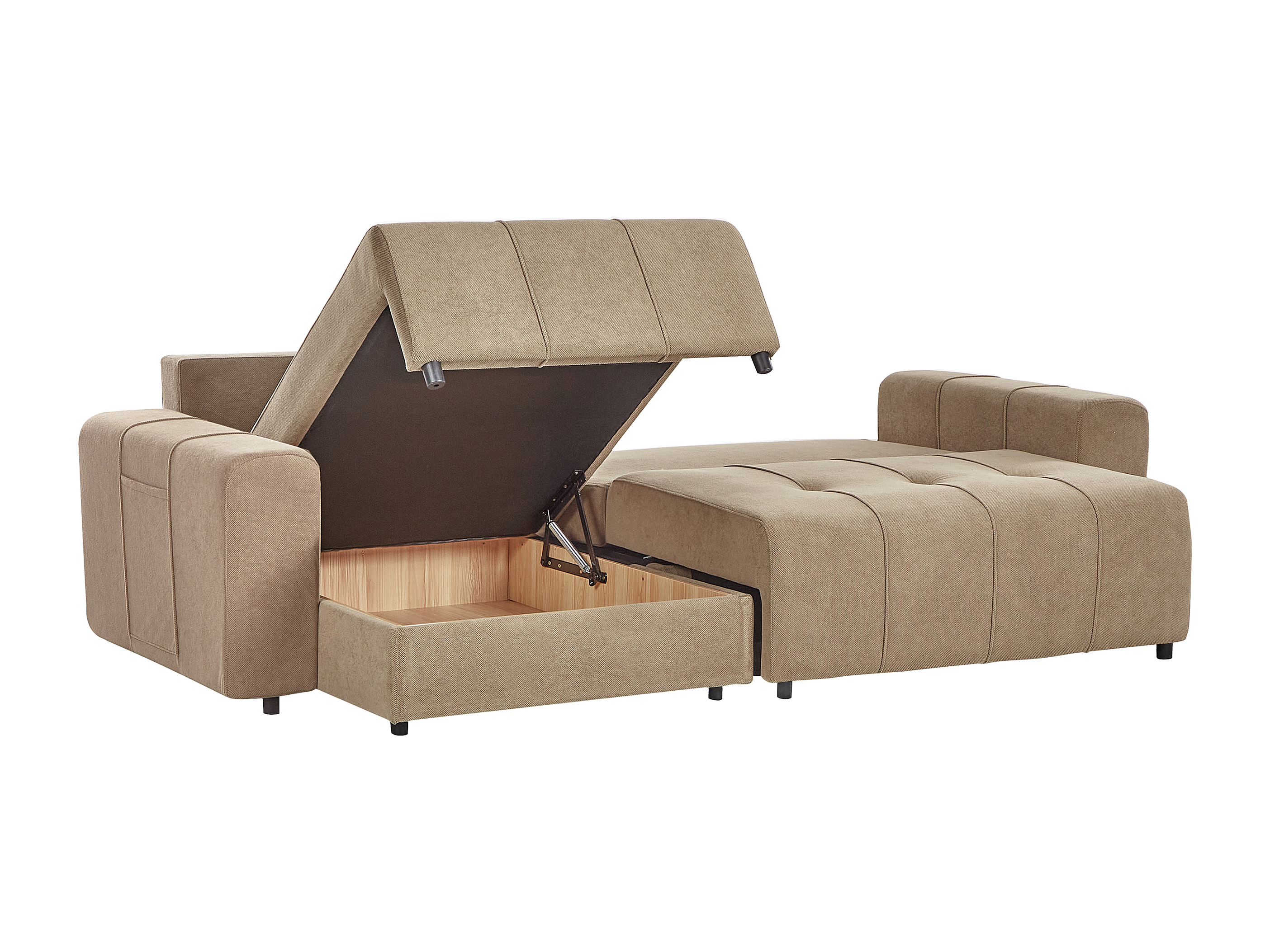 Canapé-lit d'angle 3 places INNVIK Tissu Marron avec rangement Côté droit