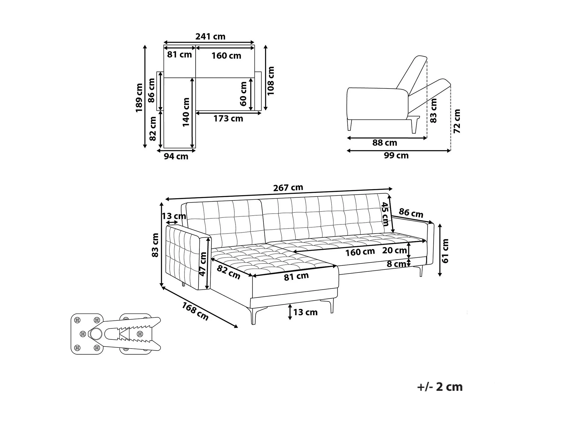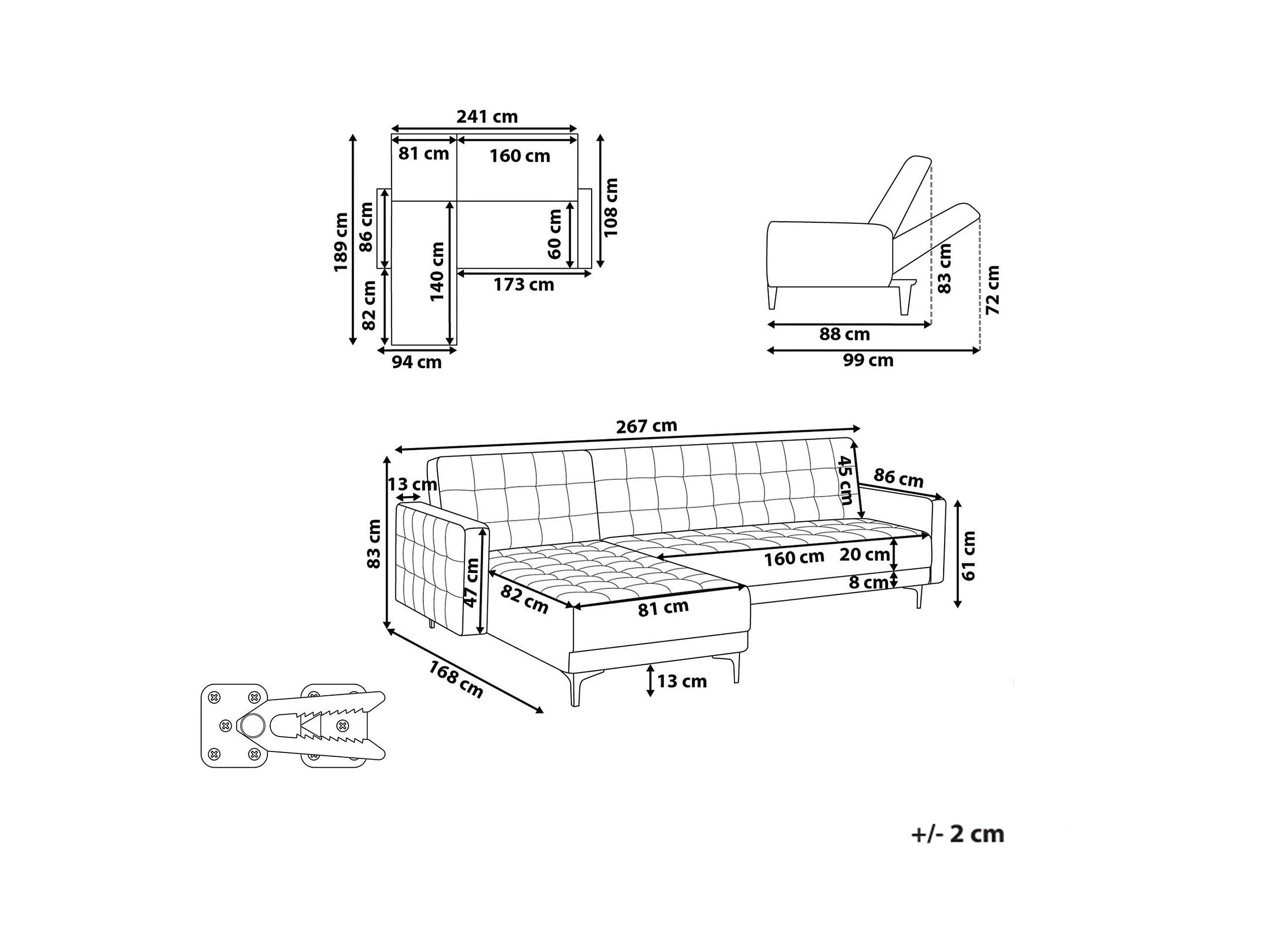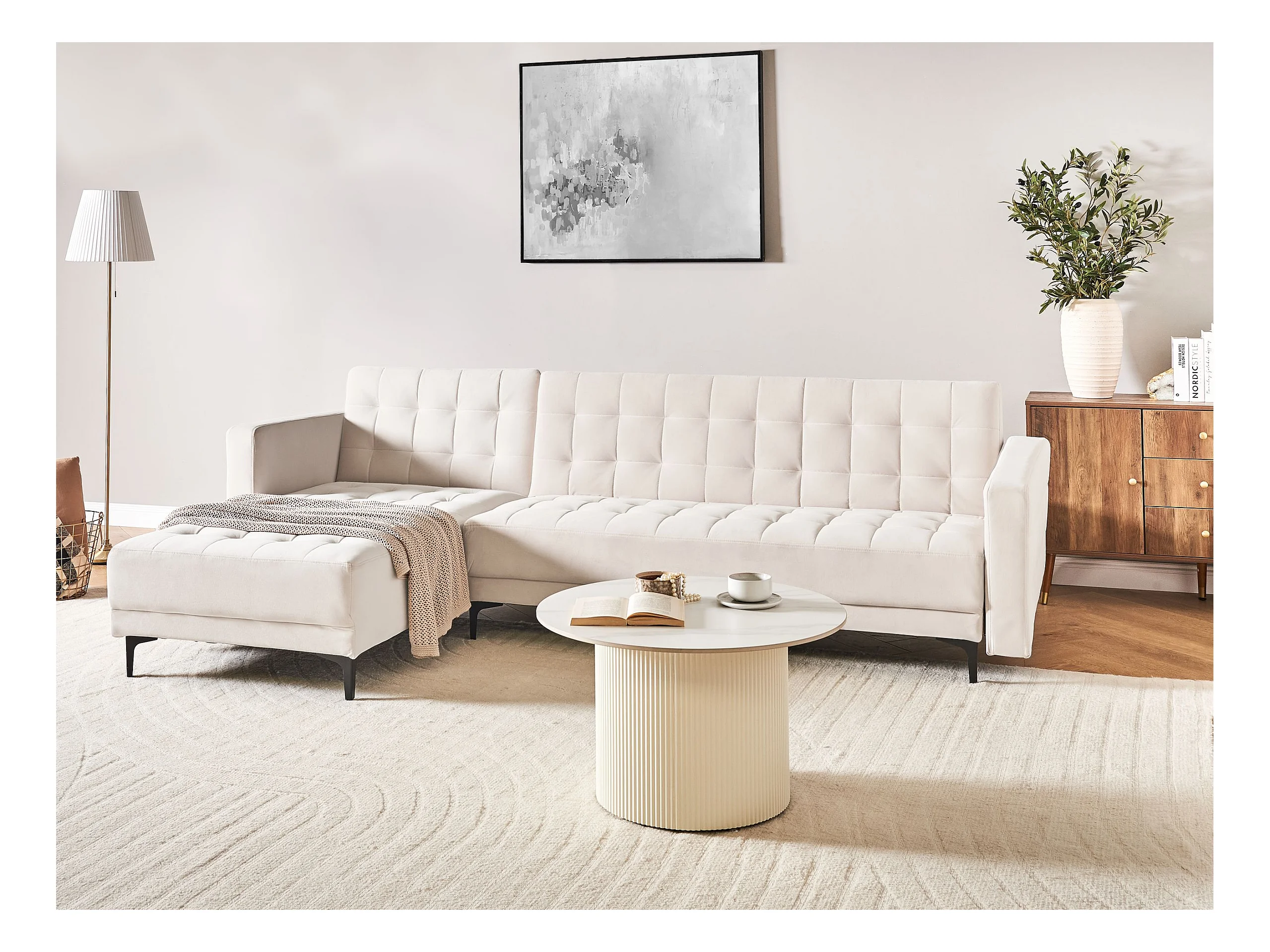 Canapé-Lit d'Angle à gauche 4 Places Dossier Réglable en Velours Beige Clair Aberdeen