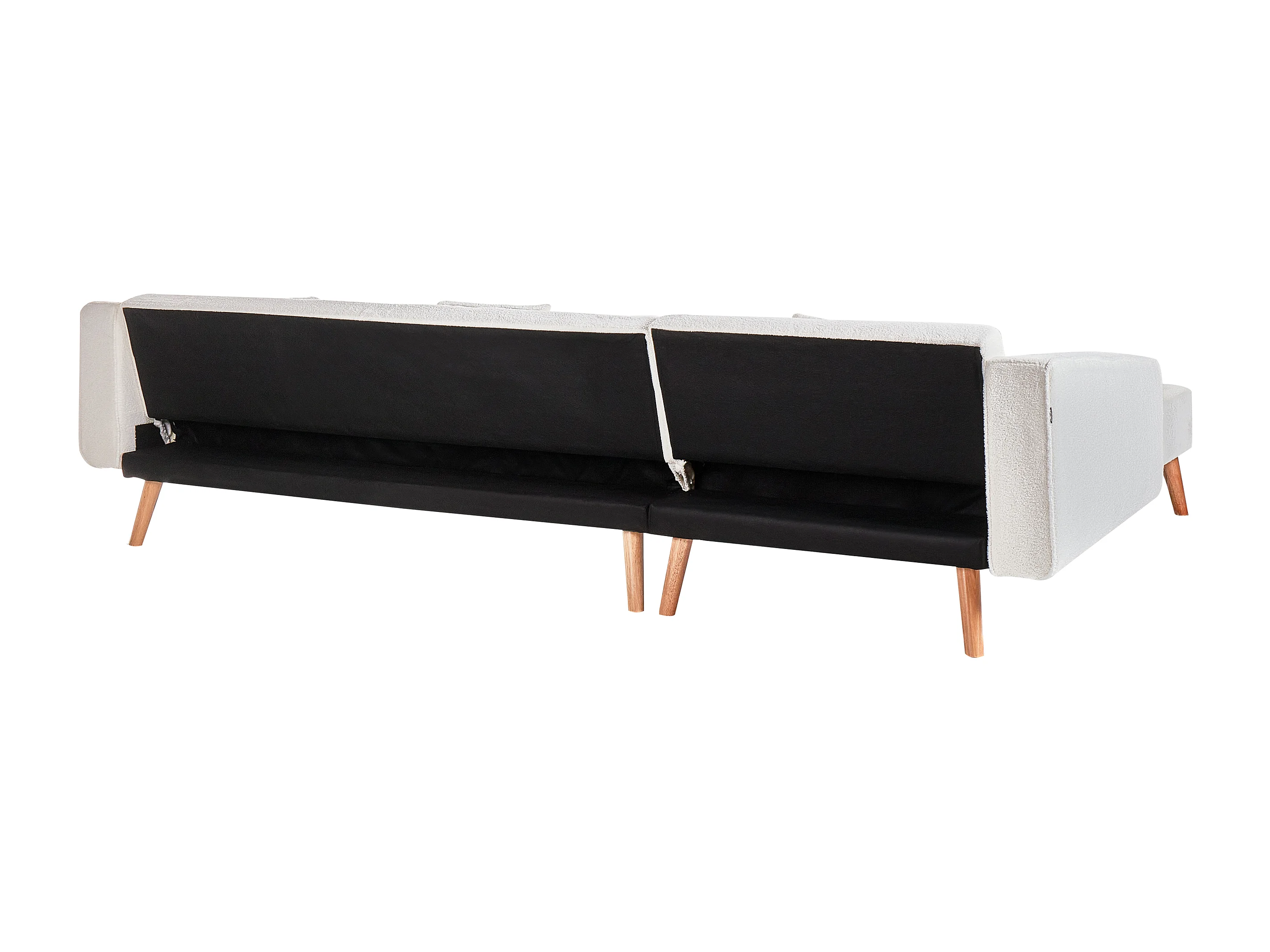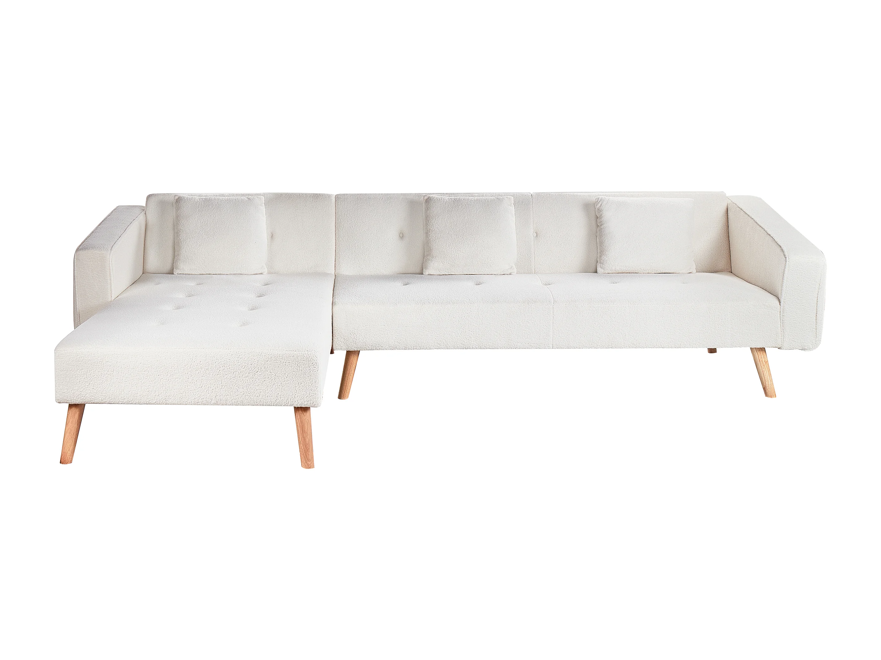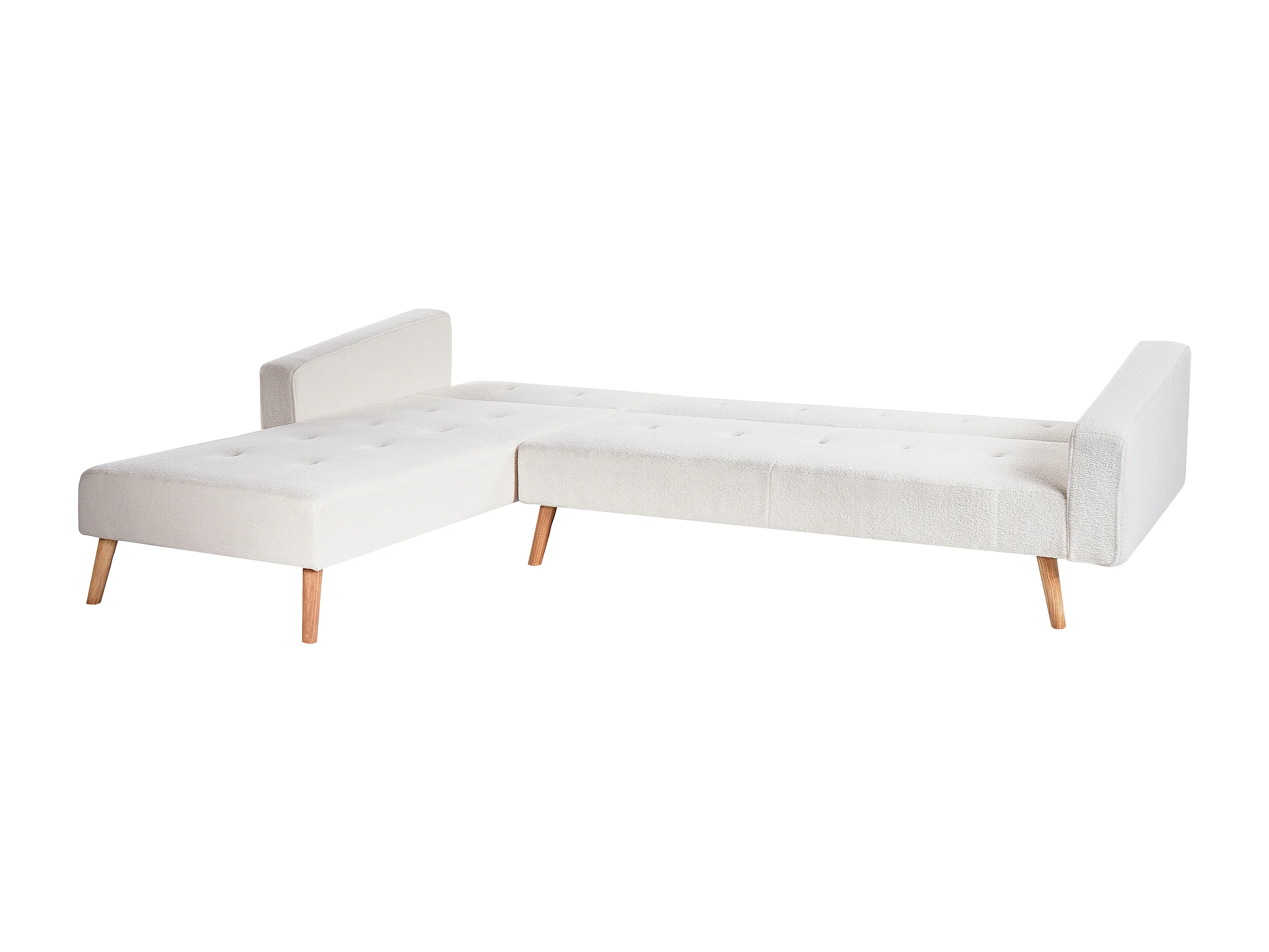 Canapé-lit d'Angle à Droite en Bouclé Capitonné Blanc Cassé Vadso