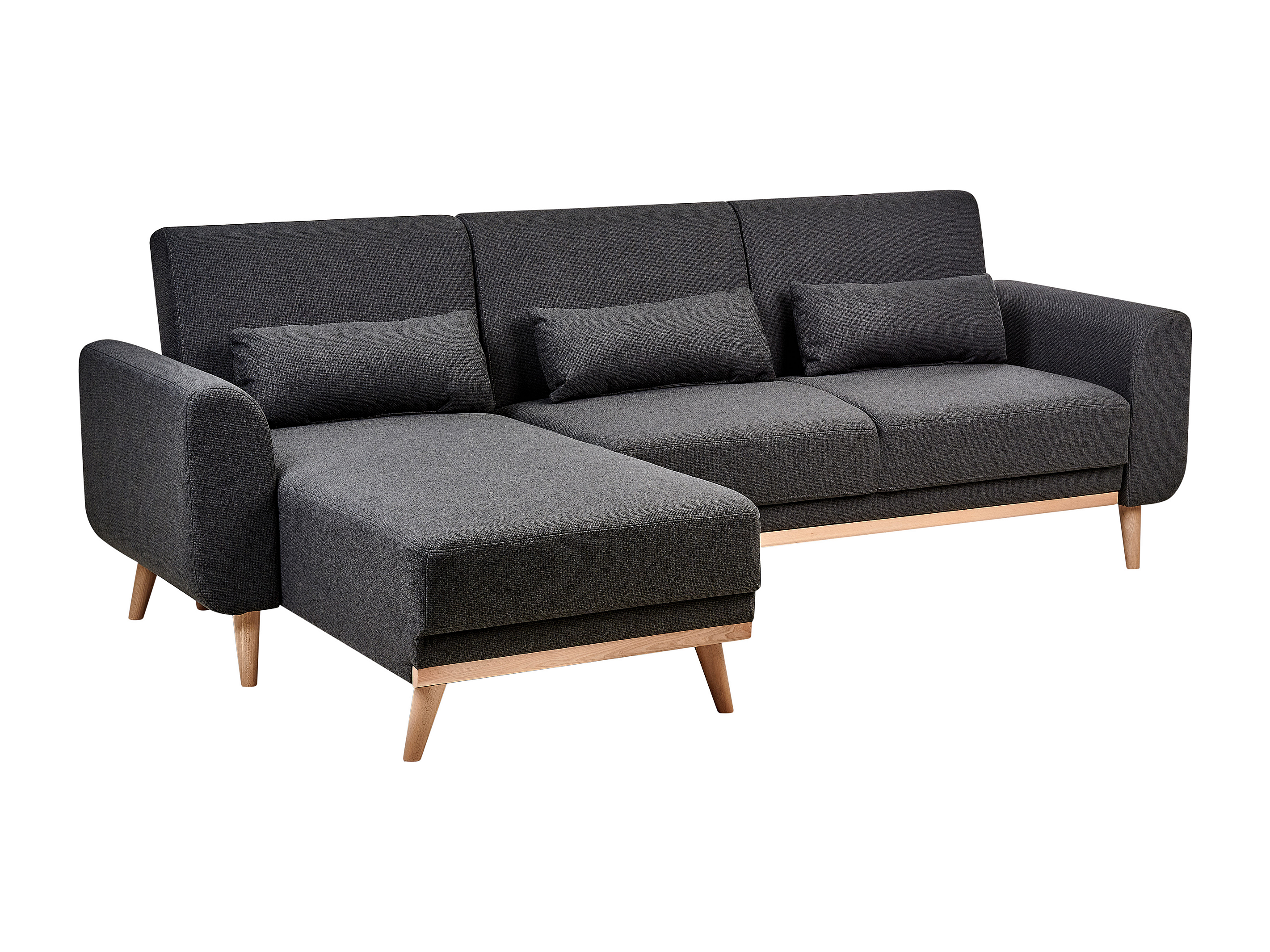 Canapé-Lit d'Angle à gauche Moderne en Tissu Pieds en Bois Coussins Supplémentaires Noir Ollsta
