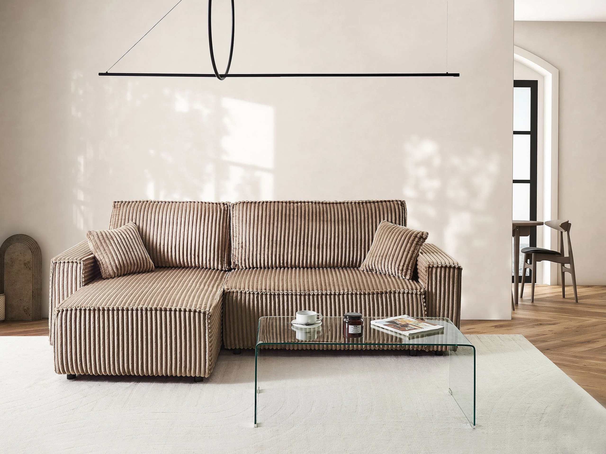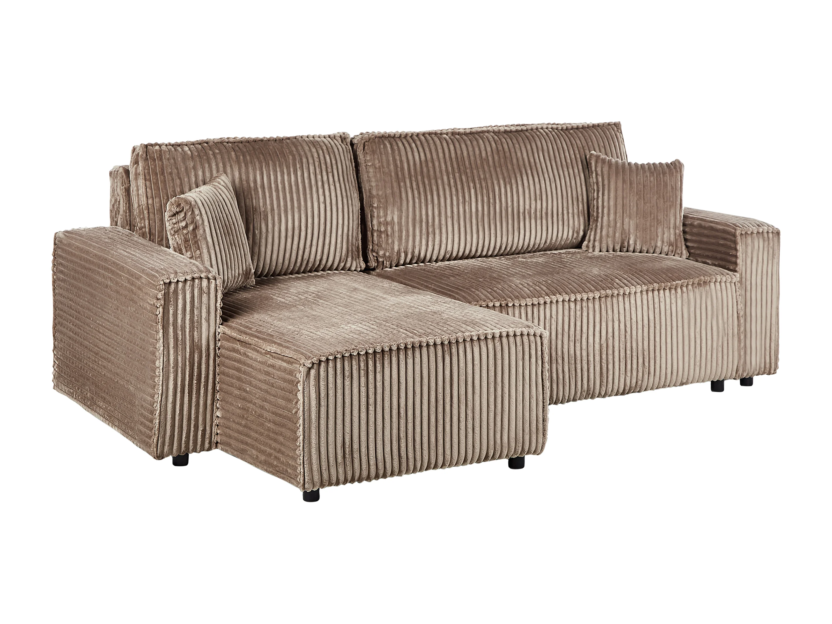 Canapé-lit d'angle 3 places ABACKA Velours côtelé Marron clair avec rangement Côté droit