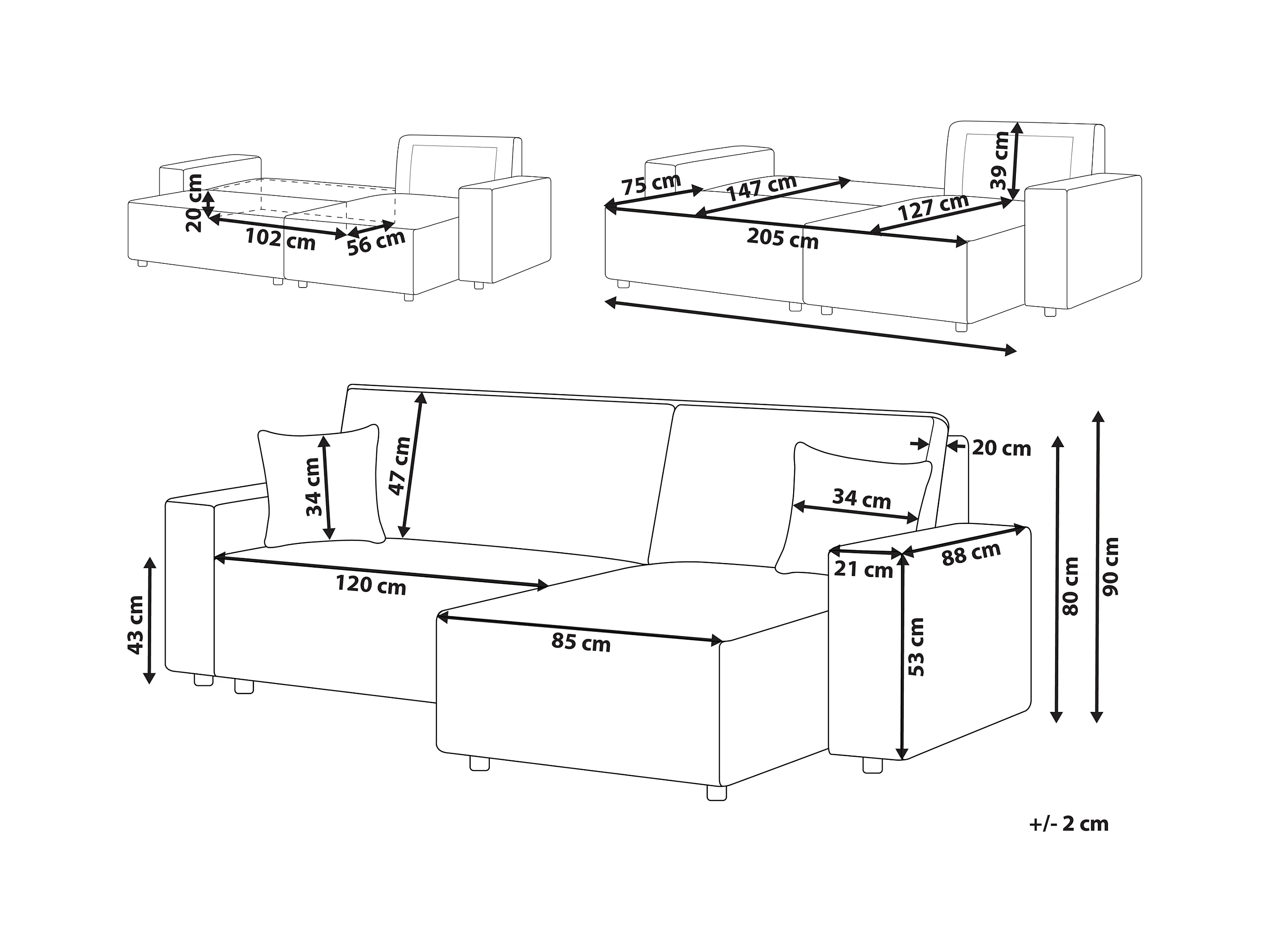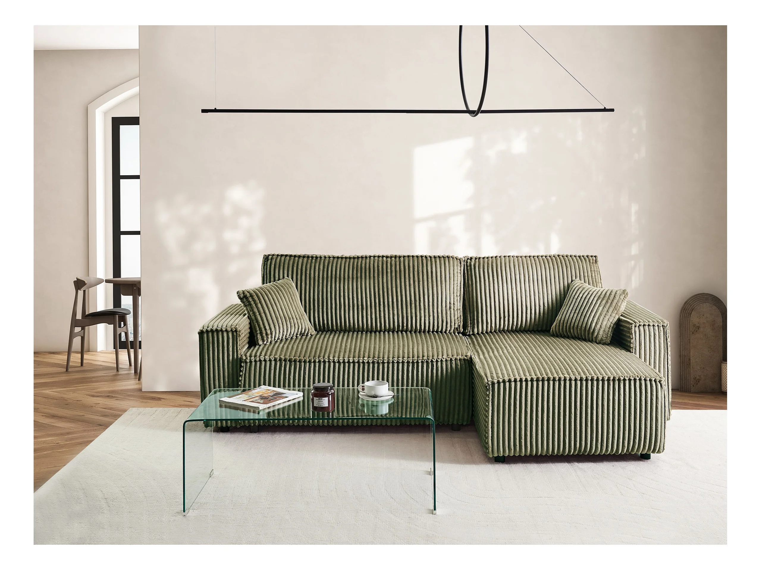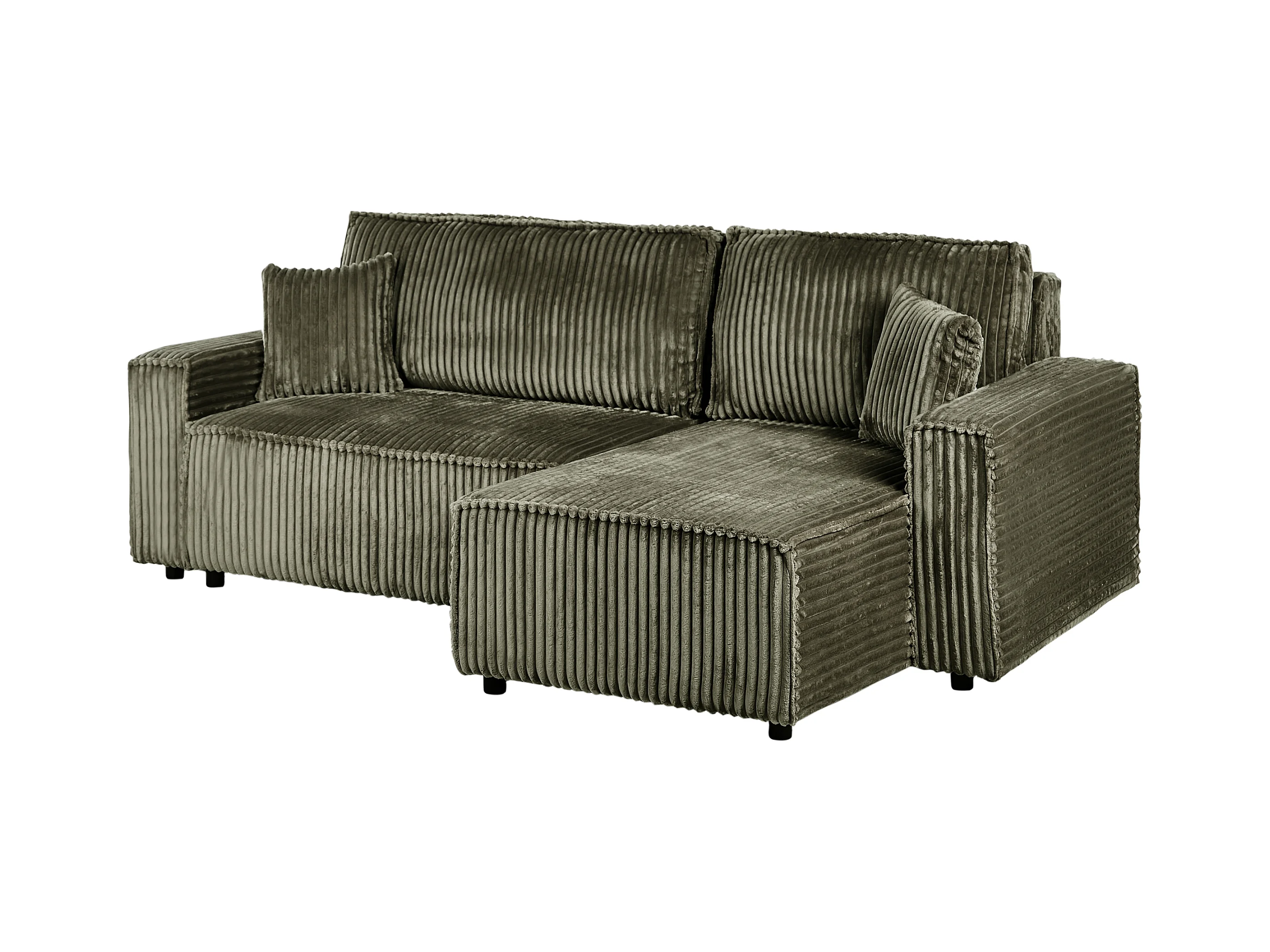 Canapé-lit d\'angle 3 places ABACKA Velours côtelé Vert avec rangement Côté droite
