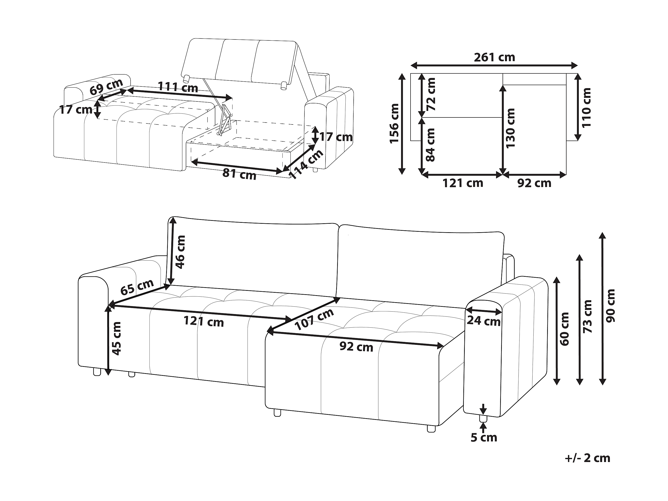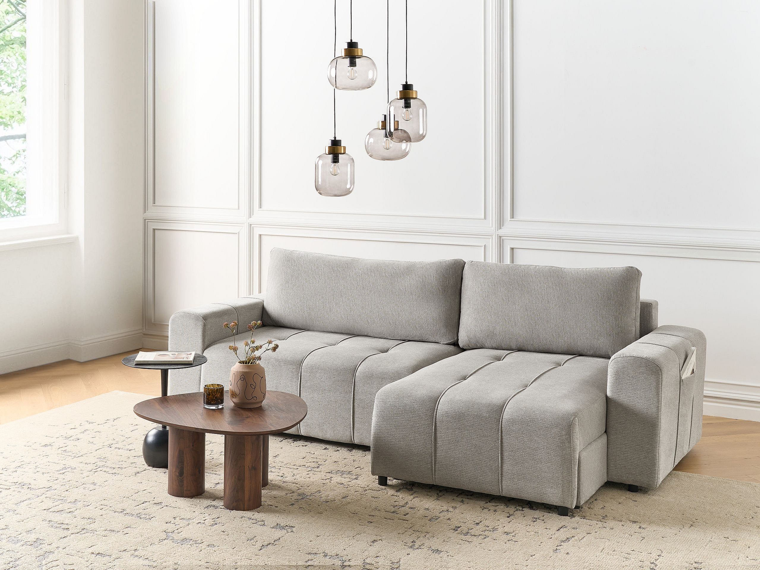 Canapé-lit d'angle 3 places INNVIK Tissu Gris clair avec rangement Côté droite