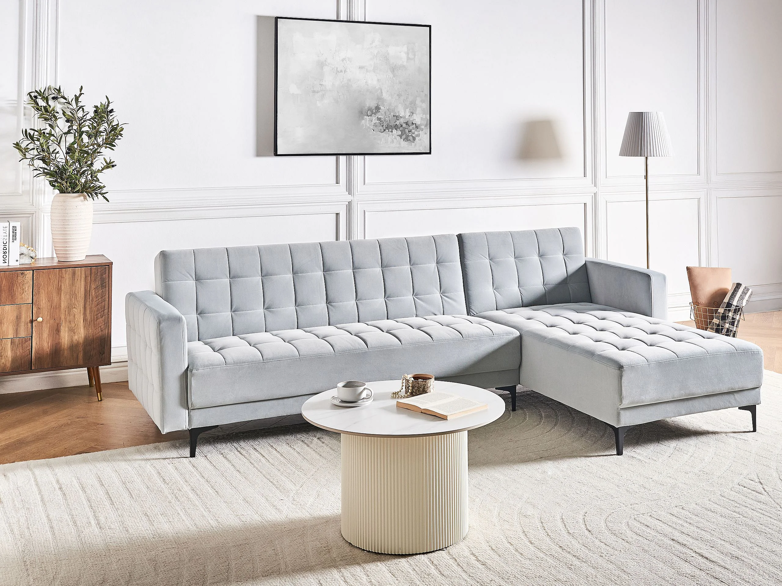 Canapé-lit d'angle modulable 4 places ABERDEEN Velours Gris clair Côté gauche
