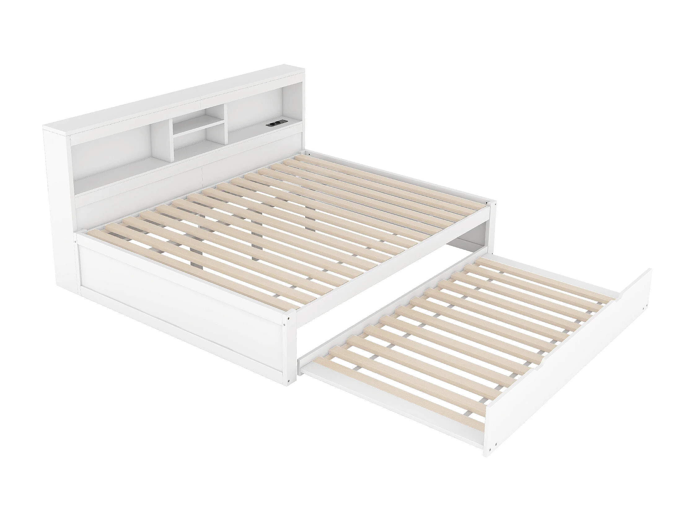 Canapé-lit 140x200 avec Lit Extensible 90x190, Prise USB et Rangement, Lit en Bois Massif, Blanc (222.5x166x92.5 cm)