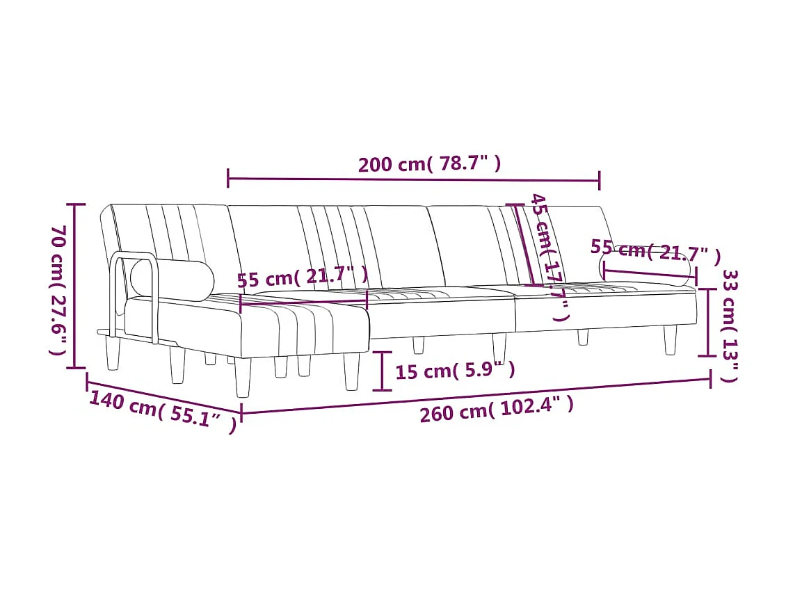 Canapé-lit en forme de L gris 260x140x70 cm velours