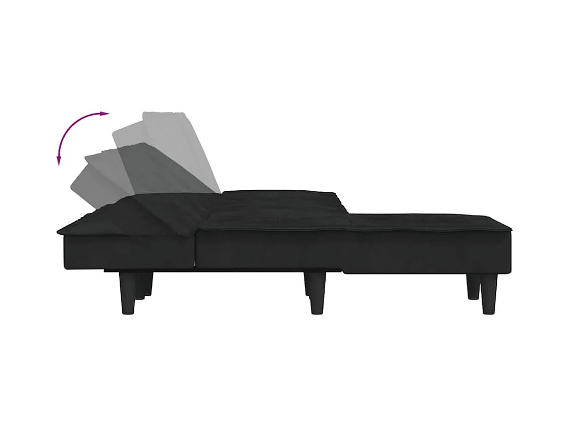 Canapé-lit à 2 places avec deux oreillers Noir Velours