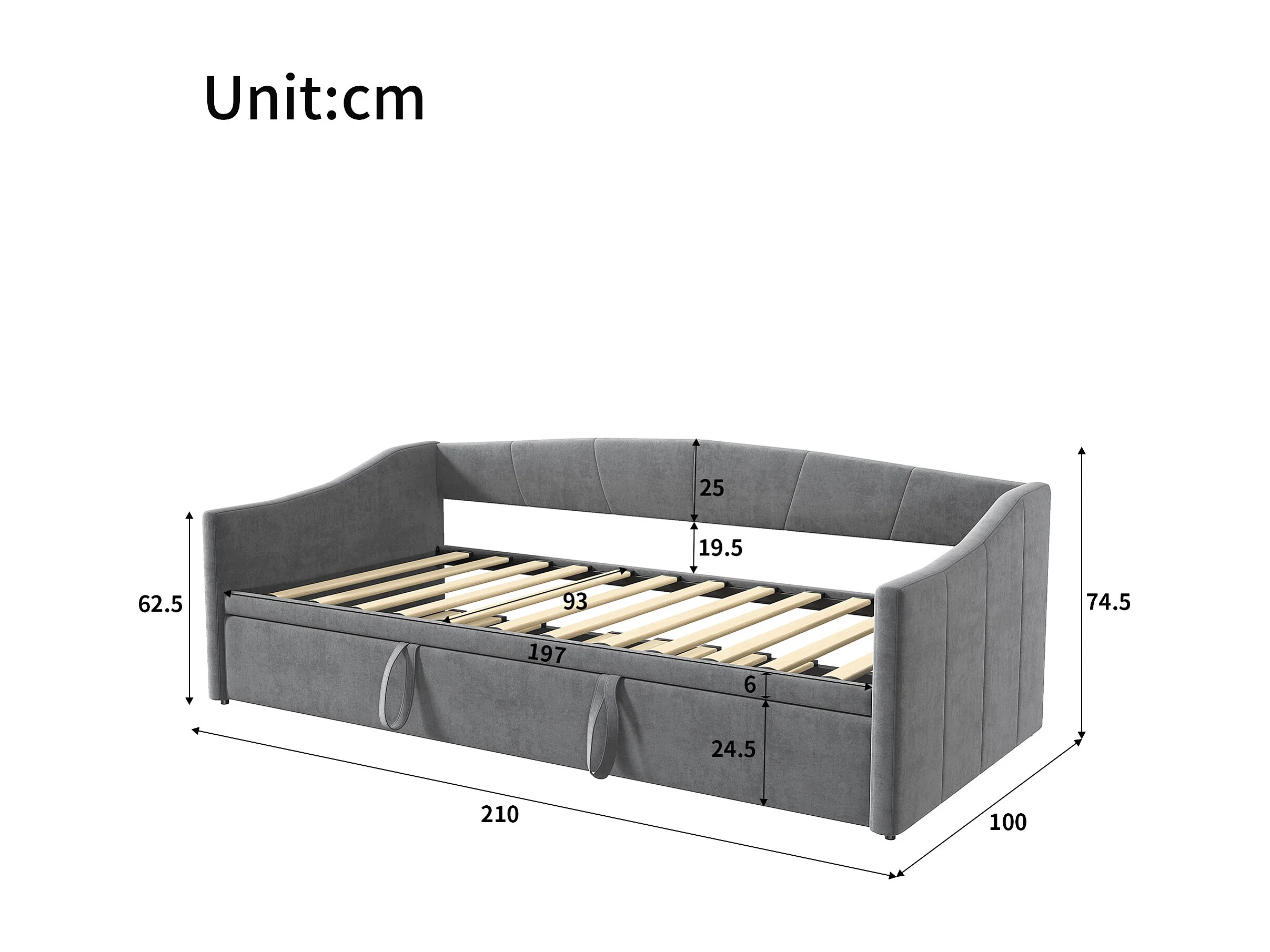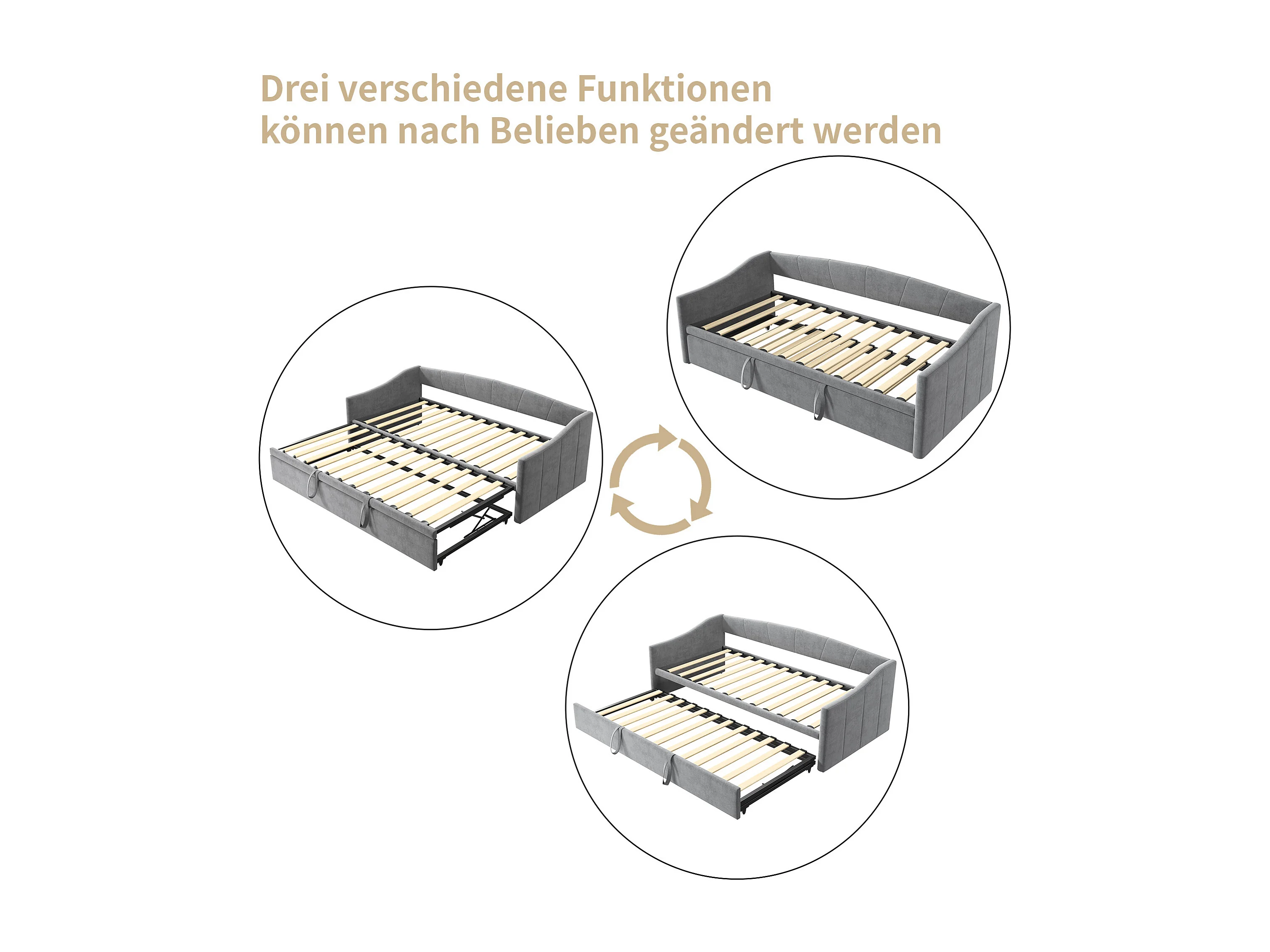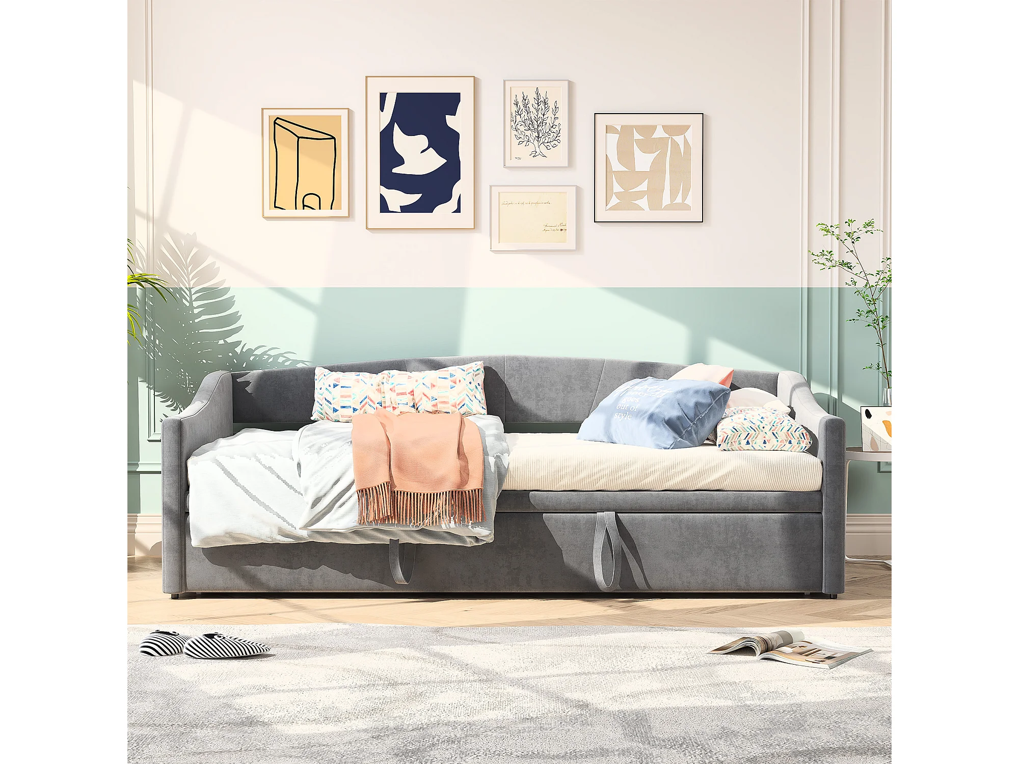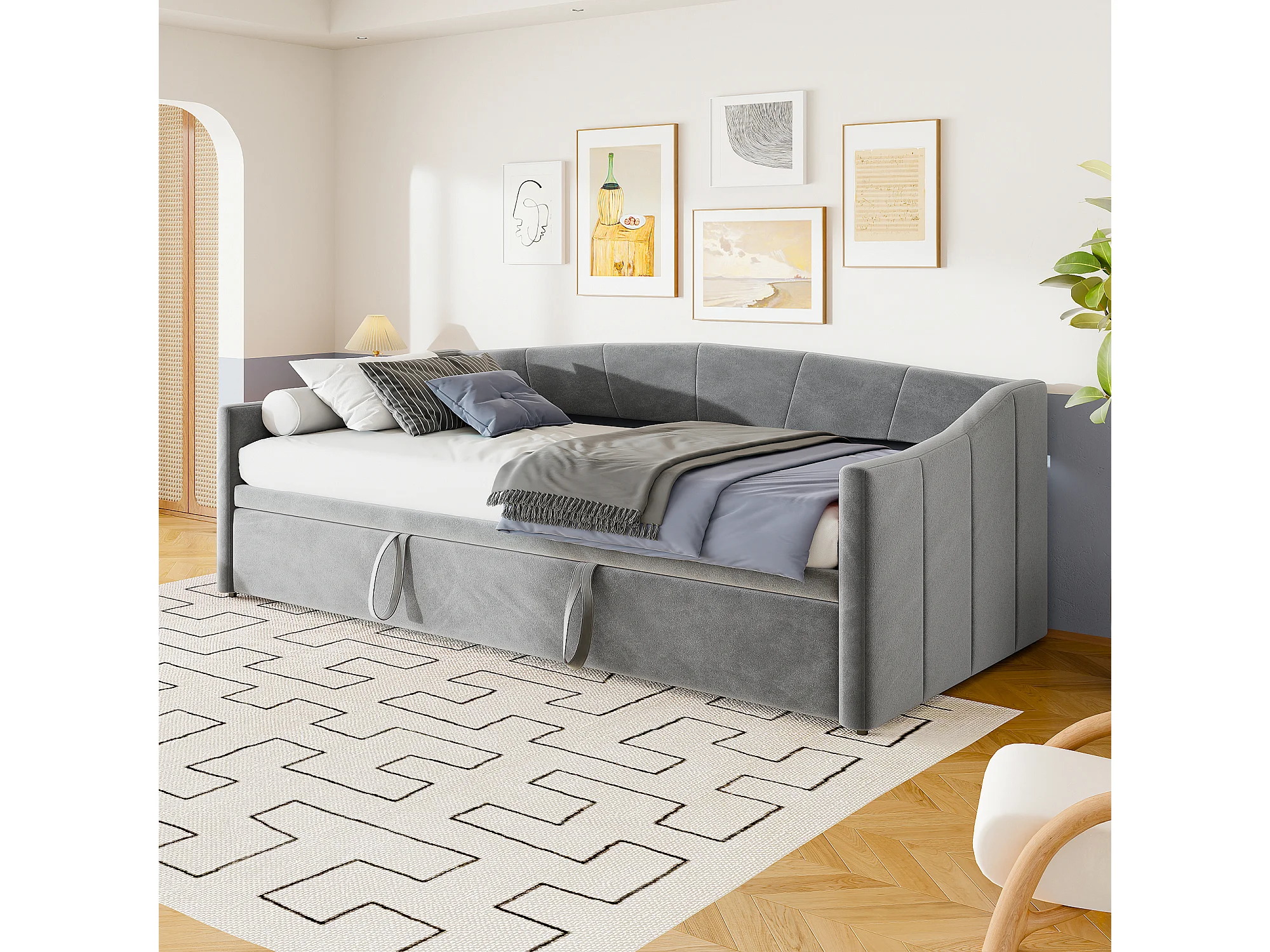Canapé-lit en velours gris – 90x200 cm – Design élégant et fonctionnel
