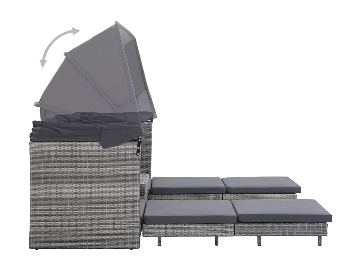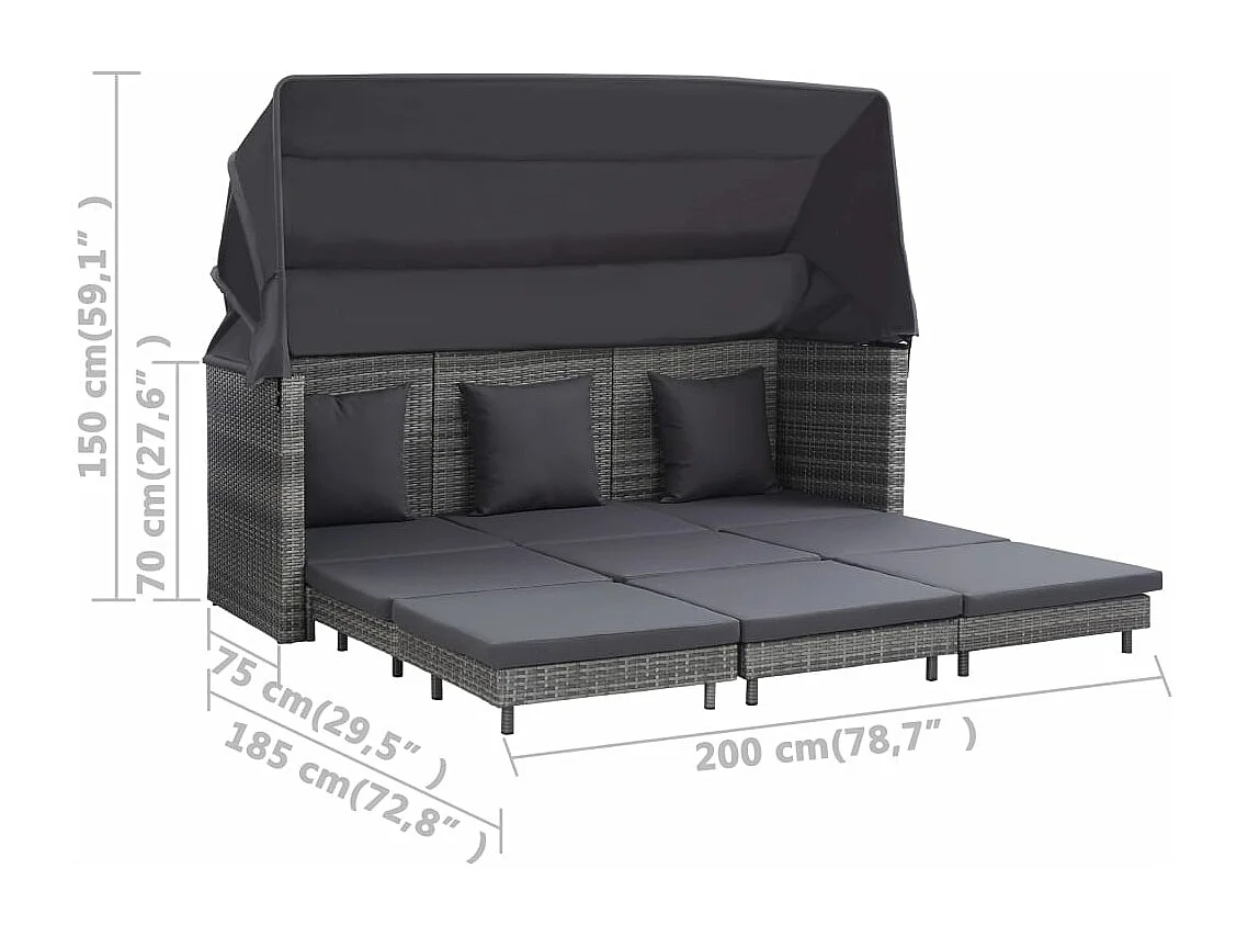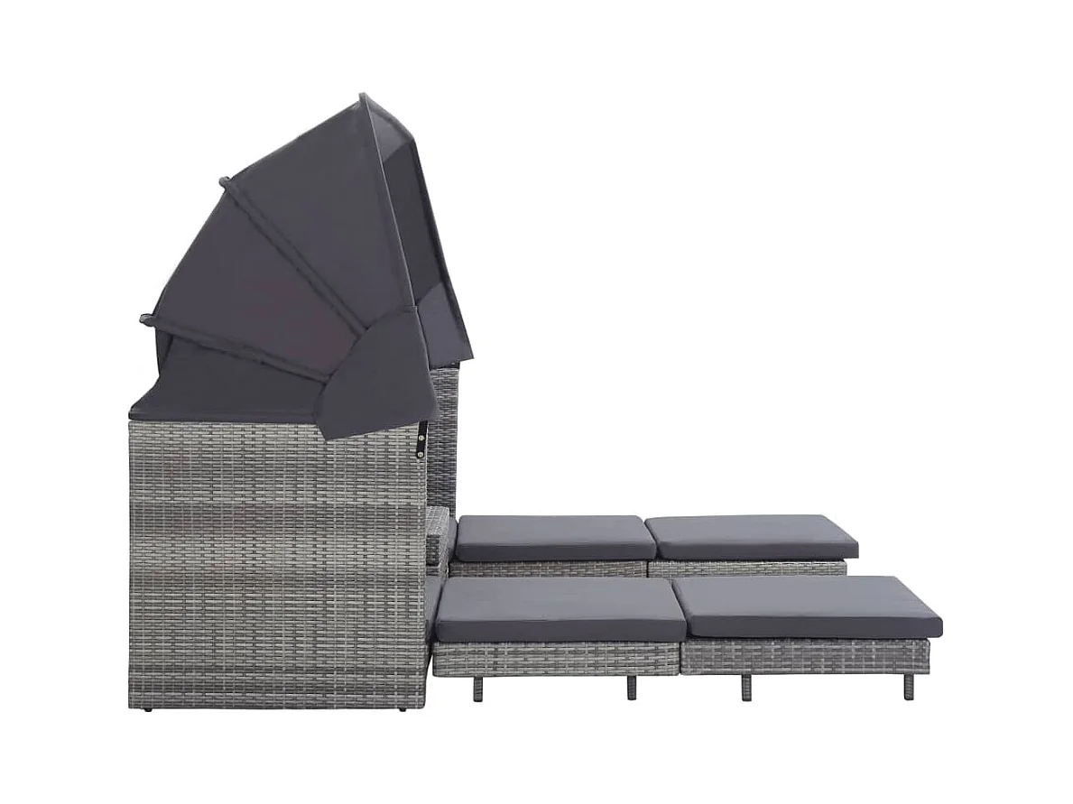 Canapé-lit extensible 3 places avec toit Résine tressée Gris