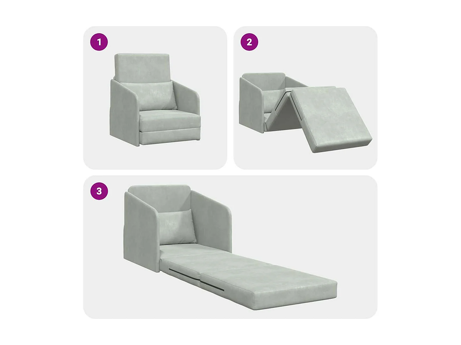 Canapé-Lit Gris clair 65 x 80 x 83 cm Velours