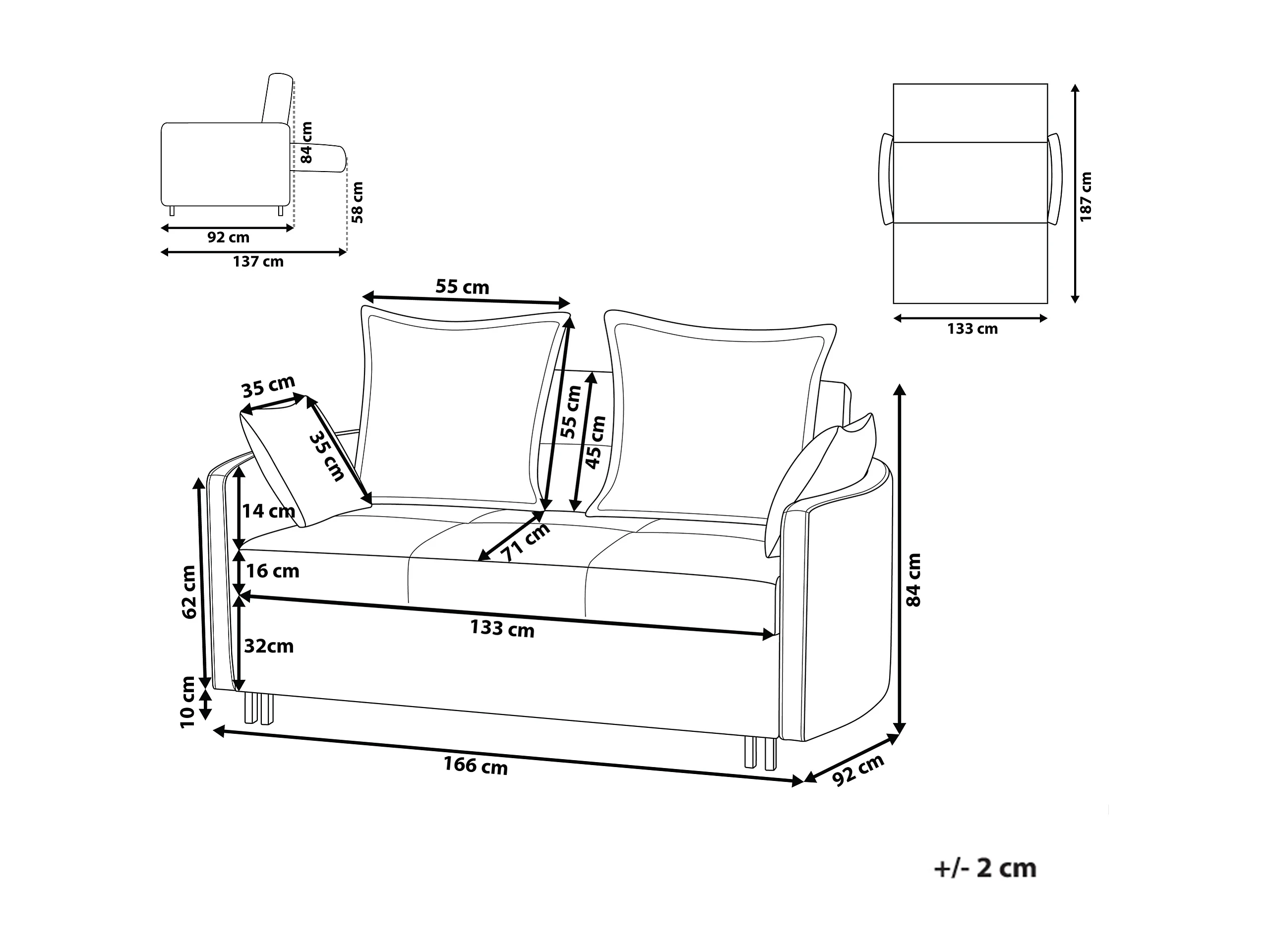 Canapé-lit 2 places HOVIN Tissu Vert