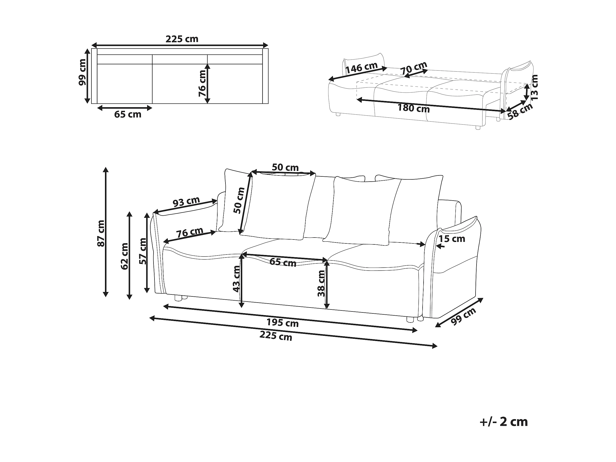 Canapé-lit 3 places KRAMA Bouclé Blanc avec rangement
