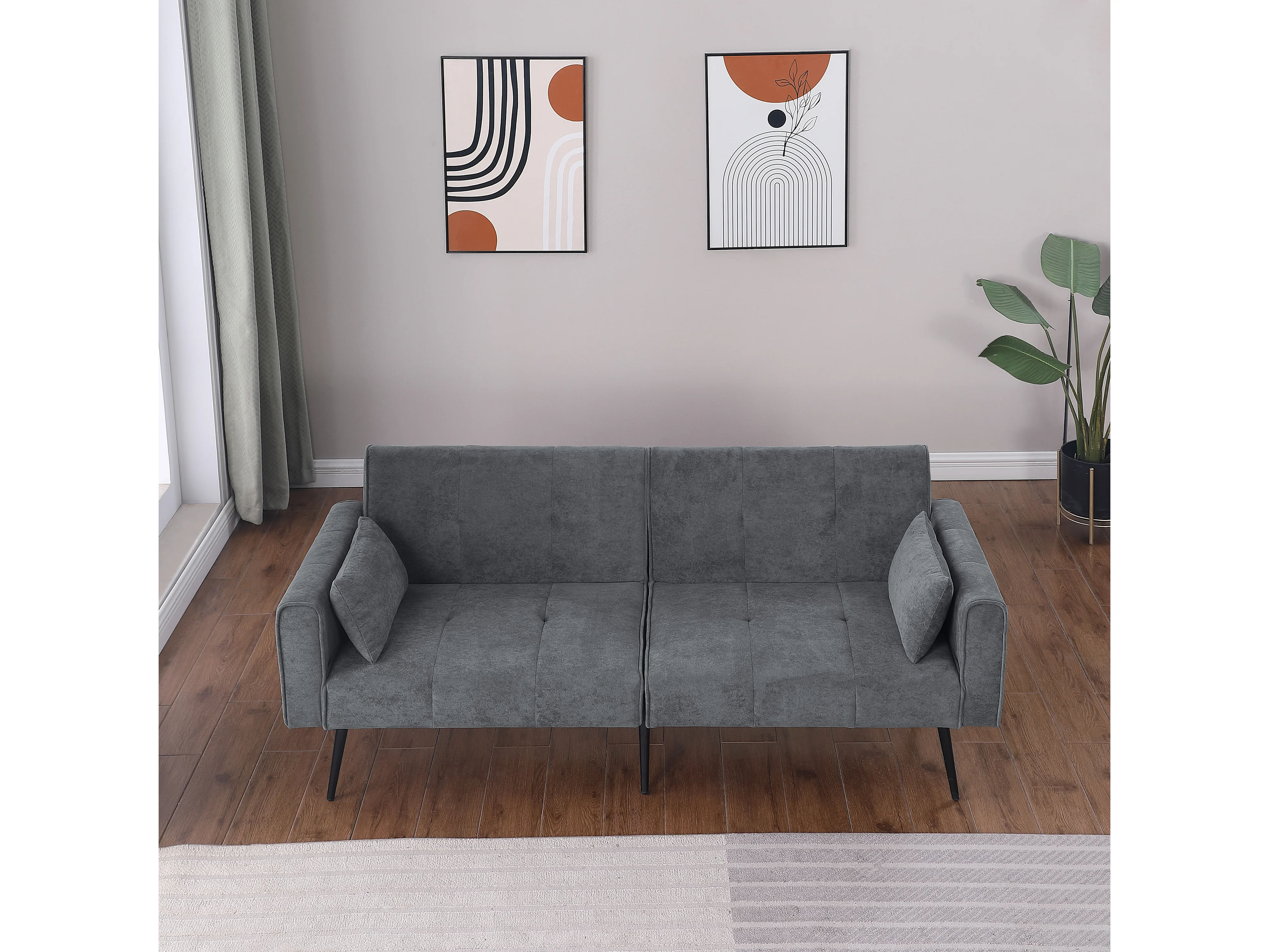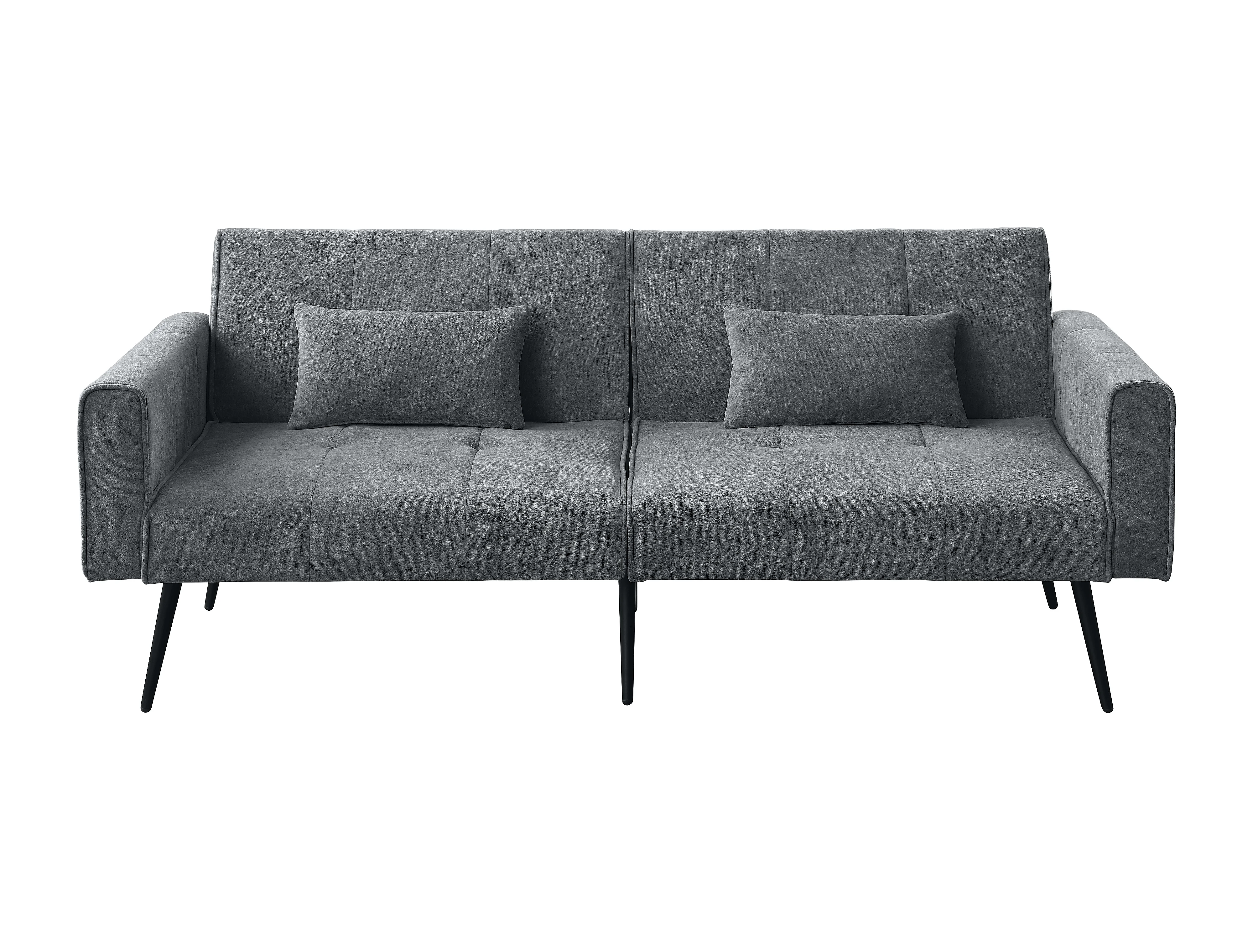 Canapé convertible, dossier réglable, tissu côtelé gris