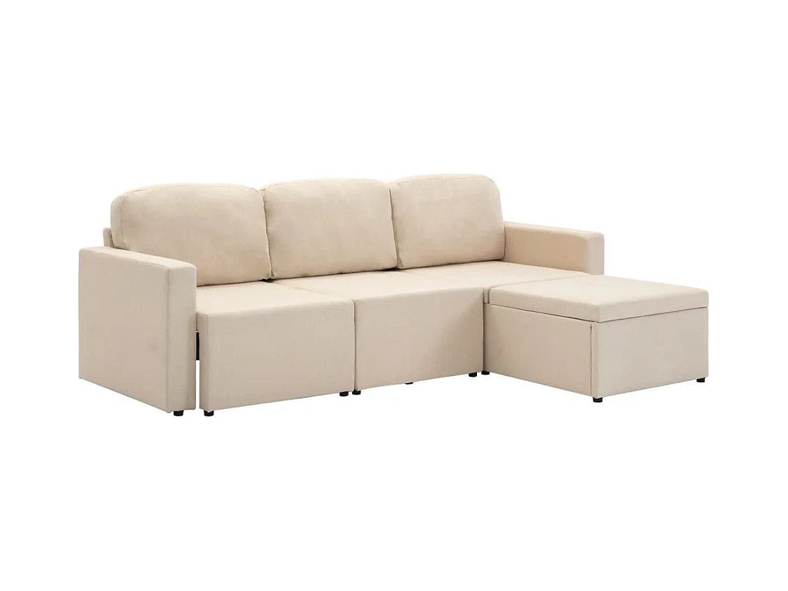 Dabakah Canapé-lit, canapé 3 places, 100% Made in Italy, Canapé de salon à ouverture pivotante, en tissu rembourré, avec accoudoirs fins, 200x95h90 cm, Beige