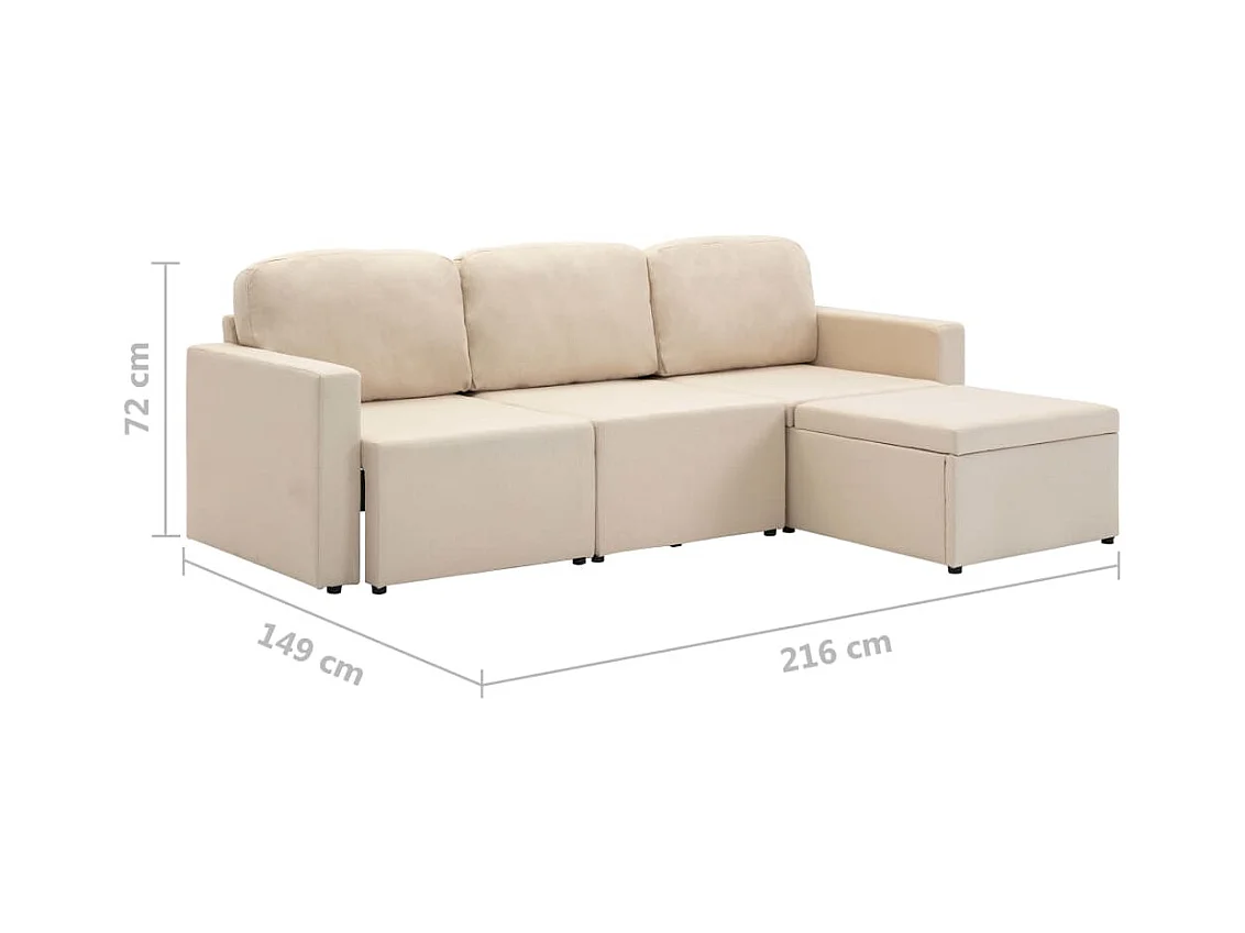 Dabaidy Canapé-lit, canapé 3 places, 100% Made in Italy, Canapé de salon à ouverture pivotante, en tissu rembourré, avec accoudoirs standards, 220x95h90 cm, Beige