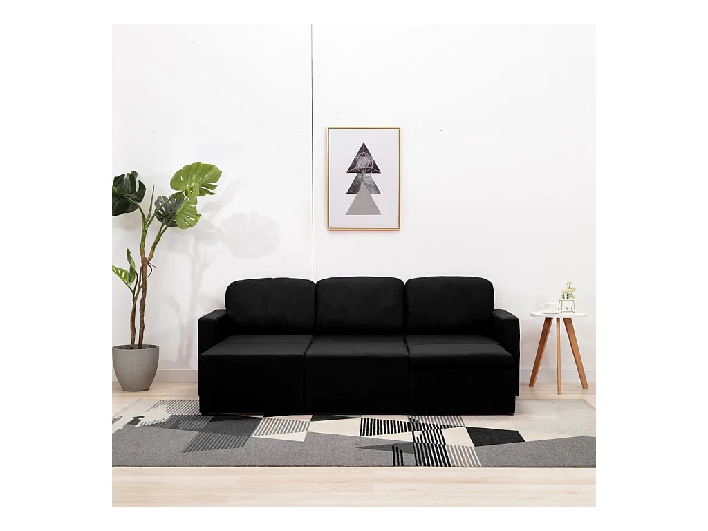Canapé-lit modulaire 3 places Noir Tissu