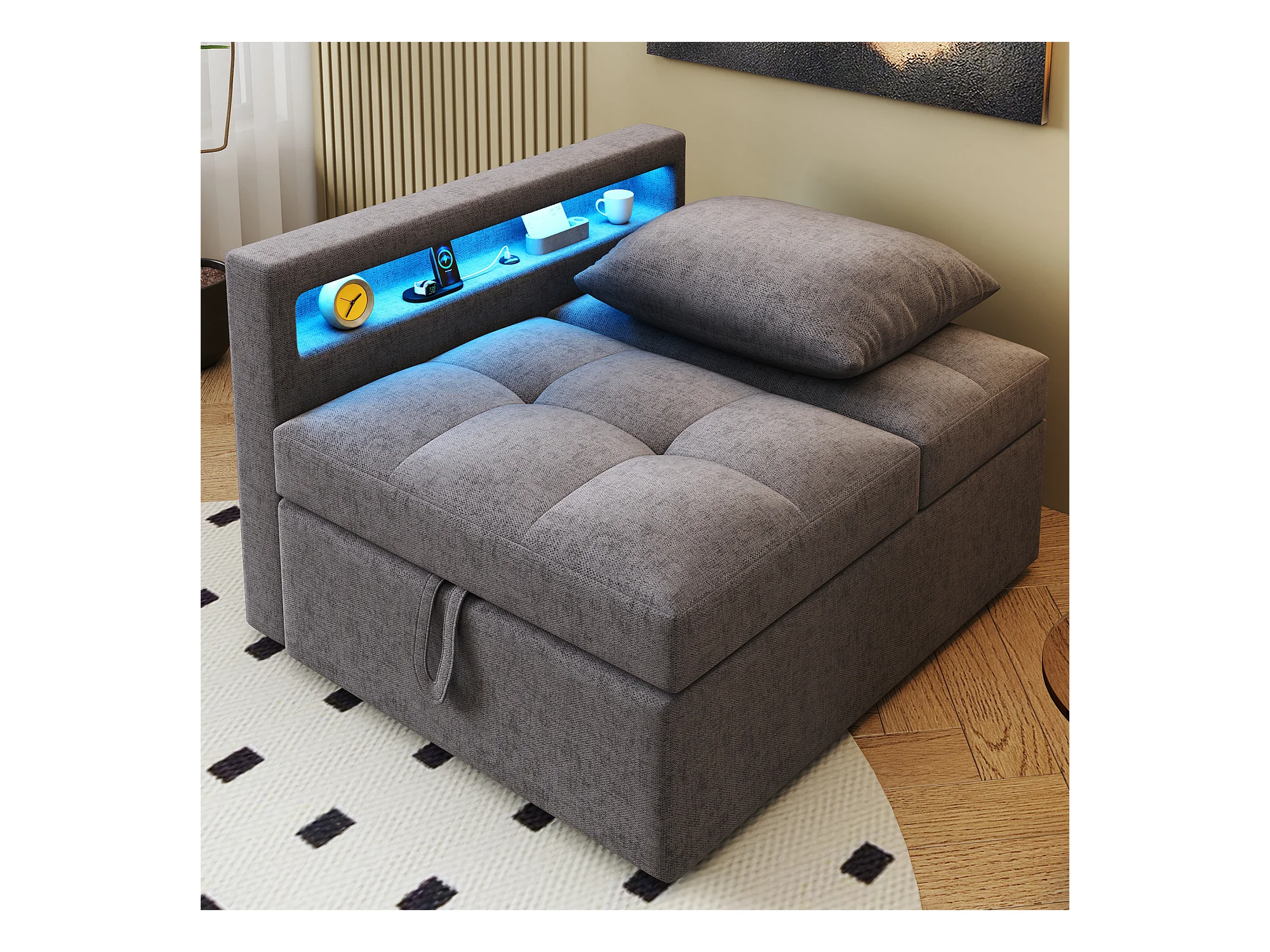 Canapé-lit multifonction - dossier réglable - accoudoirs avec bandes lumineuses LED - Port USB/Type-C - Gris Clair