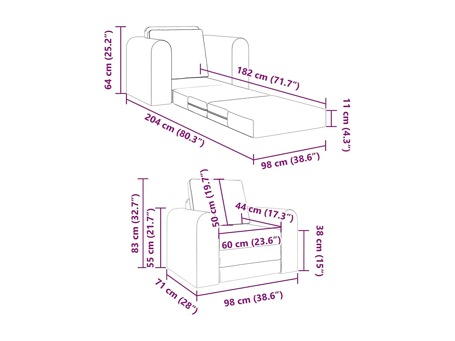 Canapé-Lit Noir 98 x 71 x 83 cm Velours