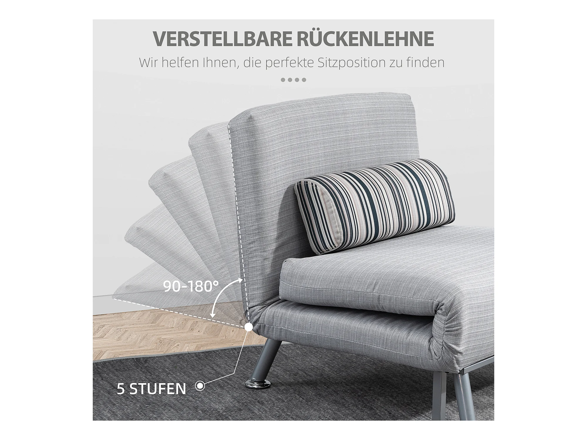 Fauteuil au sol avec dossier réglable, fonction lit, tissu en polyester, gris (72x71x60 cm)