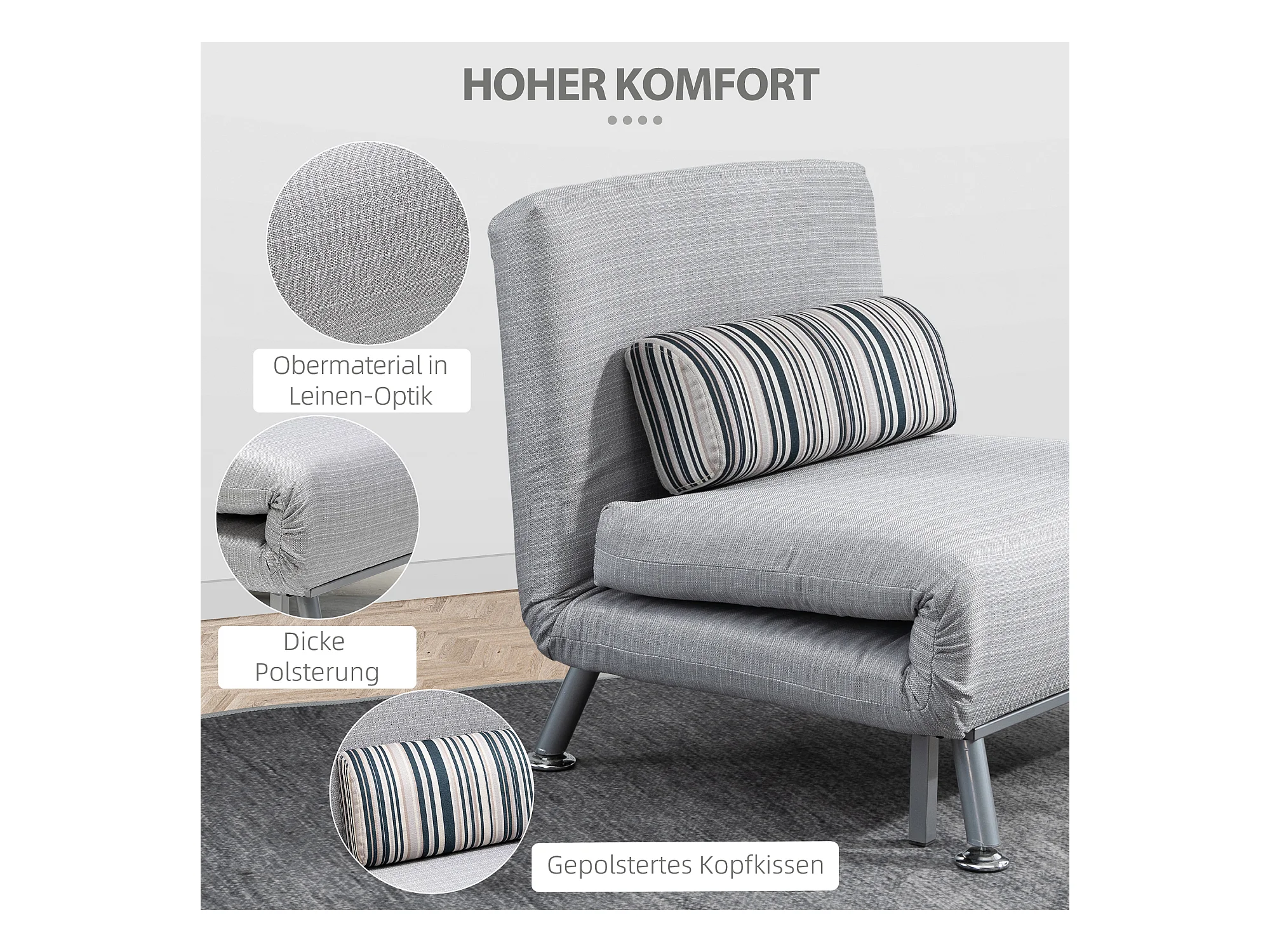 Canapé-lit pliant & Fauteuil convertible, Matelas pliable, Métal, Gris (75x70x75 cm)